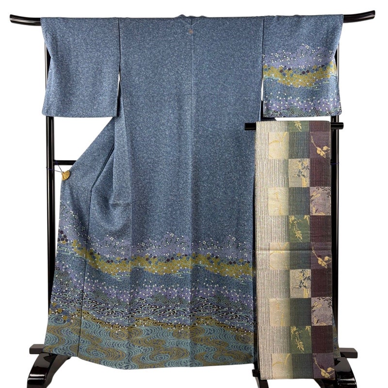 【付下げ】 灰色系 青灰色 名品 B 約160cm~約169cm 裄丈67cm-68cm (L)size 袖丈48cm 30000- 五万以下