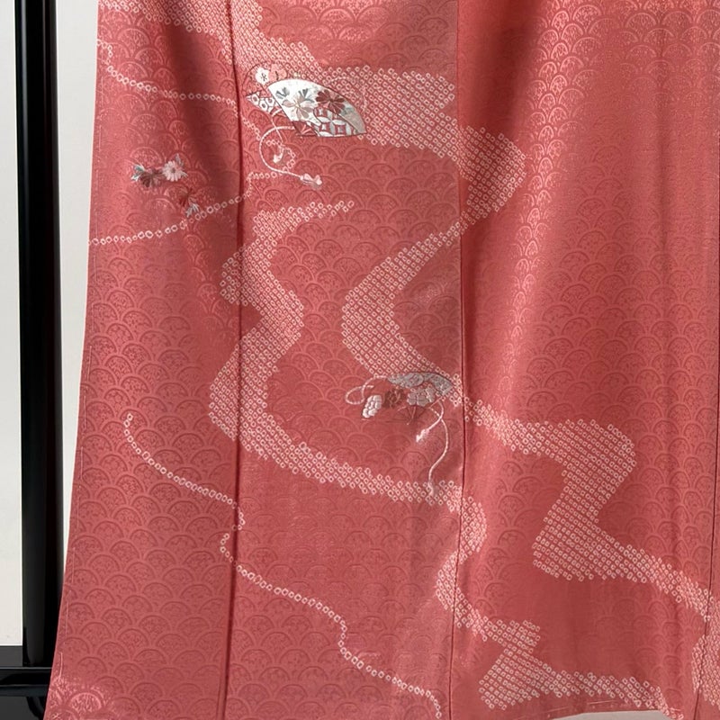 【付下げ】 赤系 ピンク 優品 B 約160cm~約169cm 裄丈67cm-68cm (L)size 袖丈50cm-60cm -3980 二万以下