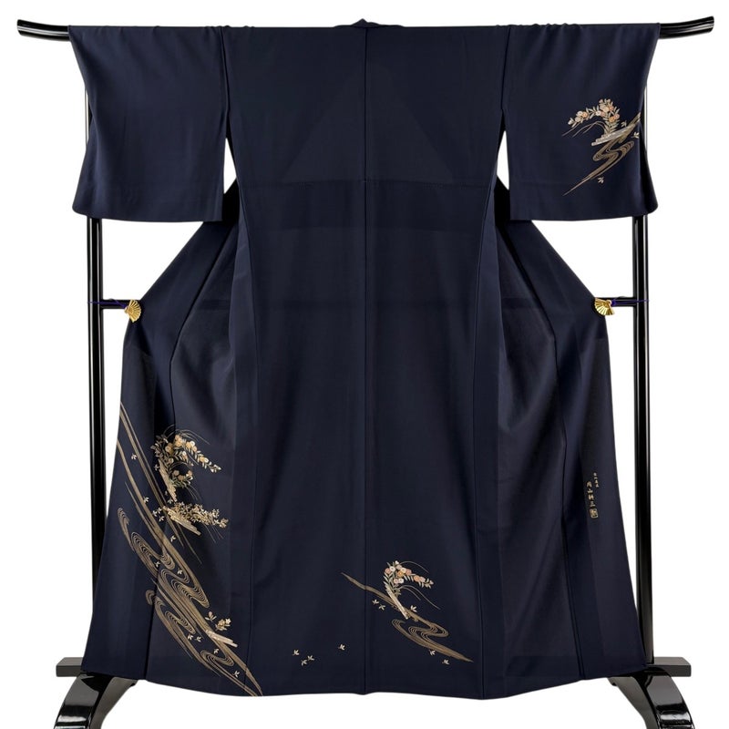 【付下げ】 青系 濃紺 優品 B 約160cm~約169cm 裄丈69cm以上 (L)size 袖丈49cm 4000-7980 二万以下