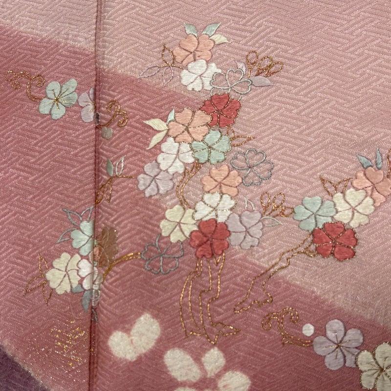 【付下げ】 赤系 ピンク 優品 B 約160cm~約169cm 裄丈65cm (M)size 袖丈50cm-60cm -3980 二万以下