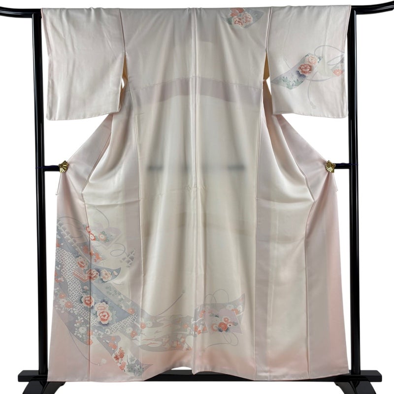 【付下げ】 赤系 薄ピンク 優品 B 約150cm~約159cm 裄丈63cm-64cm (M)size 袖丈48cm -3980 二万以下