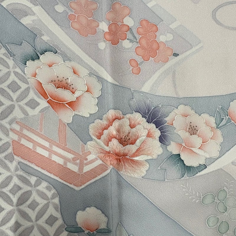 【着物ランク】優品 【素材】正絹 【身丈】約157.5cm 【裄丈】約64.5cm 【袖丈】約48cm 【袖幅】約32.5cm 【前幅】約23cm 【後幅】約30cm 【サイズ】M 【着物仕立て】袷 【着用時期】10~5月 【状態ランク】ランクB 【着物着用シーン】披露宴、パーティー、式典、食事会、お茶会、正月