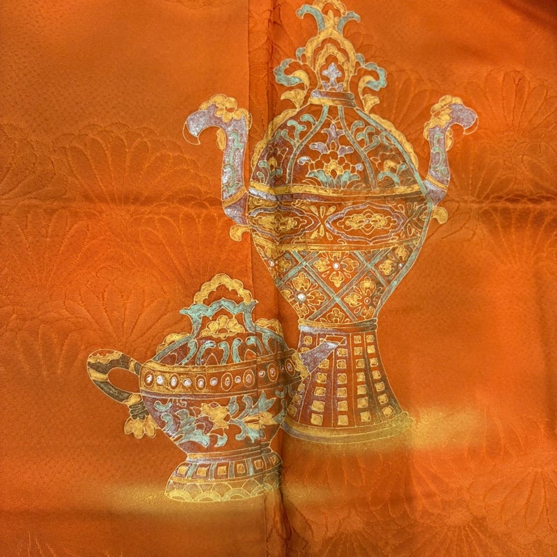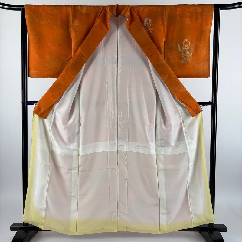 【着物ランク】優品 【素材】正絹 【身丈】約158.5cm 【裄丈】約63cm 【袖丈】約49.5cm 【袖幅】約32cm 【前幅】約24cm 【後幅】約30.5cm 【サイズ】S 【着物仕立て】袷 【着用時期】10~5月 【状態ランク】ランクB 【着物着用シーン】披露宴、パーティー、式典、食事会、お茶会、正月