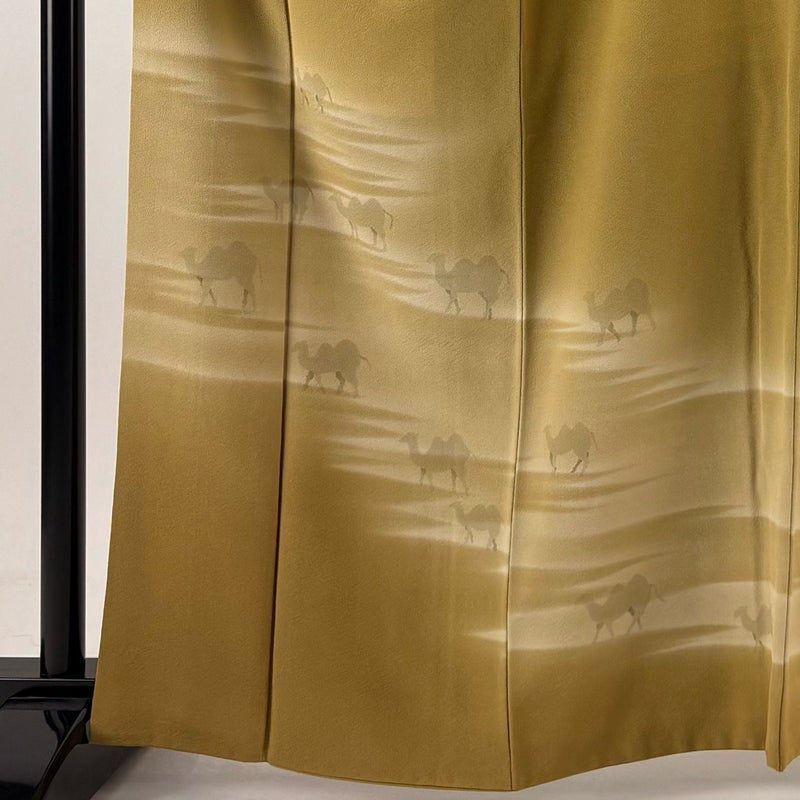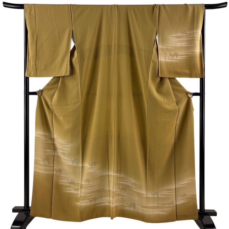 【付下げ】 黄色系 黄土色 優品 A 約160cm~約169cm 裄丈67cm-68cm (M)size 袖丈50cm-60cm -3980 美品 二万以下