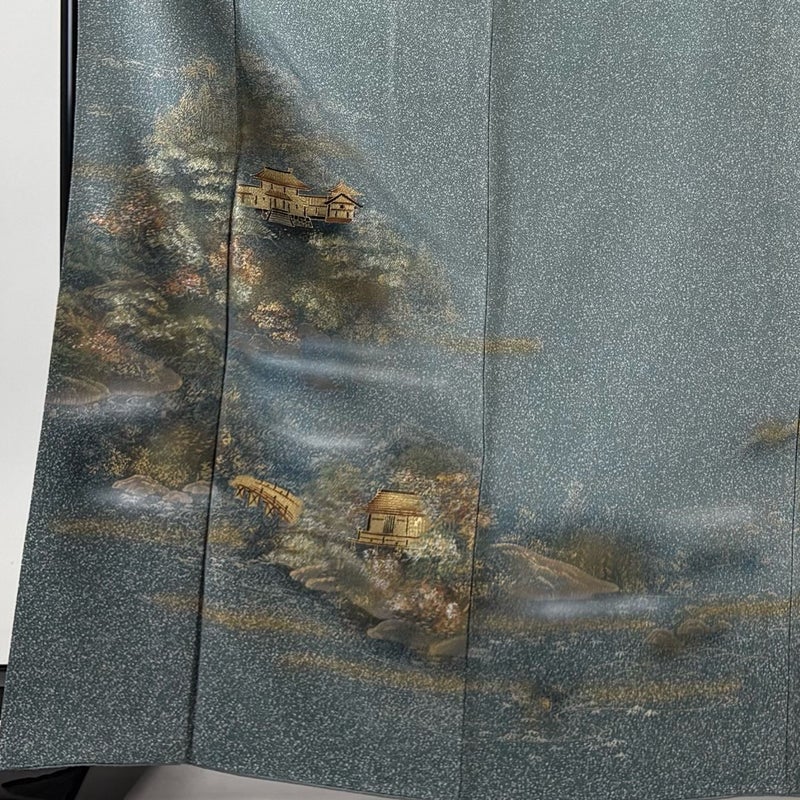 【付下げ】 灰色系 灰緑 優品 B 約160cm~約169cm 裄丈67cm-68cm (L)size 袖丈49cm -3980 二万以下