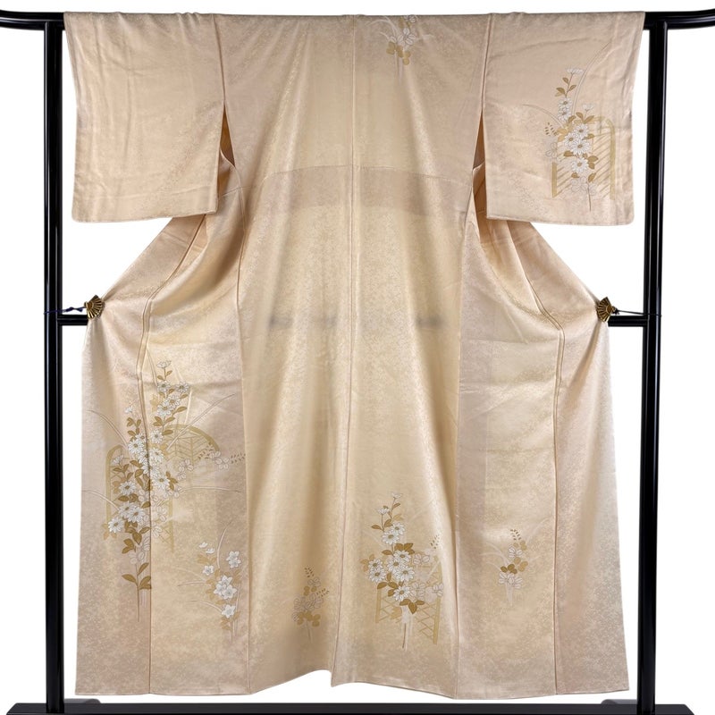 【付下げ】 白系 ベージュ 優品 B 約150cm~約159cm 裄丈62cm以下 (S)size 袖丈47cm -3980 二万以下