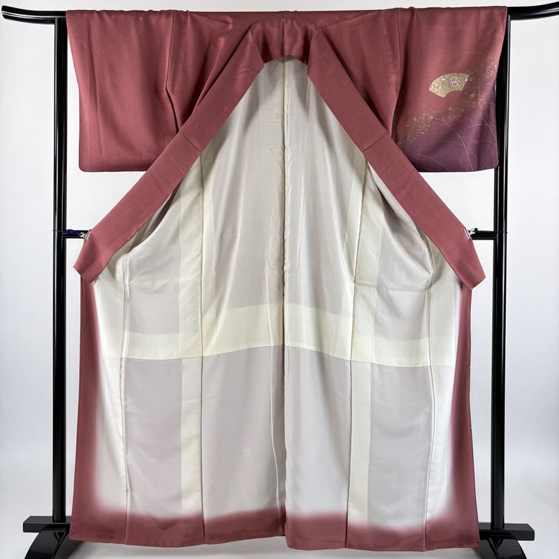 【付下げ】 赤系 小豆色 優品 B 約160cm~約169cm 裄丈65cm (M)size 袖丈48cm -3980 二万以下