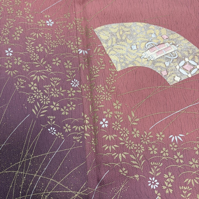 【着物ランク】優品 【素材】正絹 【身丈】約162.5cm 【裄丈】約65cm 【袖丈】約48cm 【袖幅】約32.5cm 【前幅】約24cm 【後幅】約29.5cm 【サイズ】M 【着物仕立て】袷 【着用時期】10~5月 【状態ランク】ランクB 【着物着用シーン】披露宴、パーティー、式典、食事会、お茶会、正月