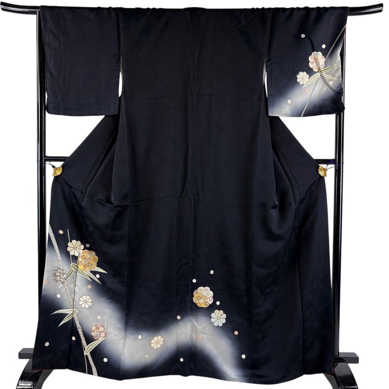 【付下げ】 黒系 黒 優品 B 約160cm~約169cm 裄丈67cm-68cm (L)size 袖丈48cm -3980 二万以下