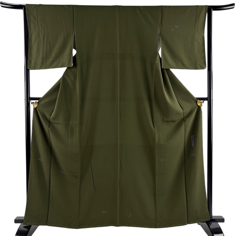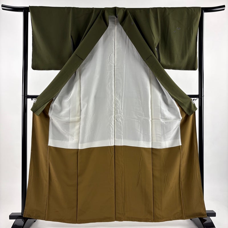 【付下げ】 茶系 茶緑色 名品 B 約160cm~約169cm 裄丈63cm-64cm (M)size 袖丈48cm 9990-29990 二万以下