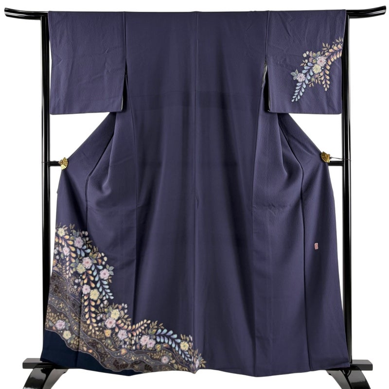 【付下げ】 紫系 青紫 名品 C 約160cm~約169cm 裄丈63cm-64cm (M)size 袖丈46cm以下 9990-29990 二万以下
