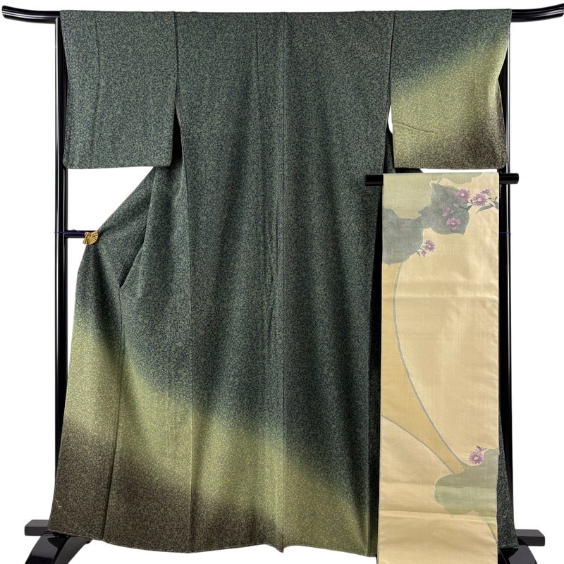 【付下げ】 緑系 深緑 秀品 A 約160cm~約169cm 裄丈66cm (M)size 袖丈49cm 9990-29990 美品 五万以下