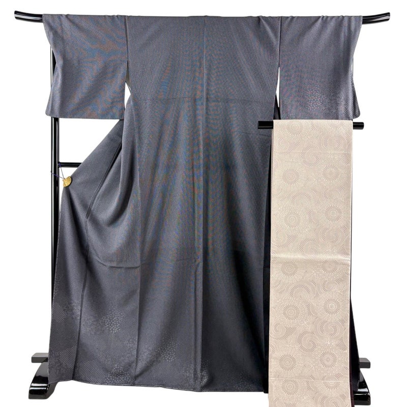 【付下げ】 黒系 墨色 秀品 A 約170cm~約179cm 裄丈69cm以上 (L)size 袖丈48cm 9990-29990 美品 五万以下
