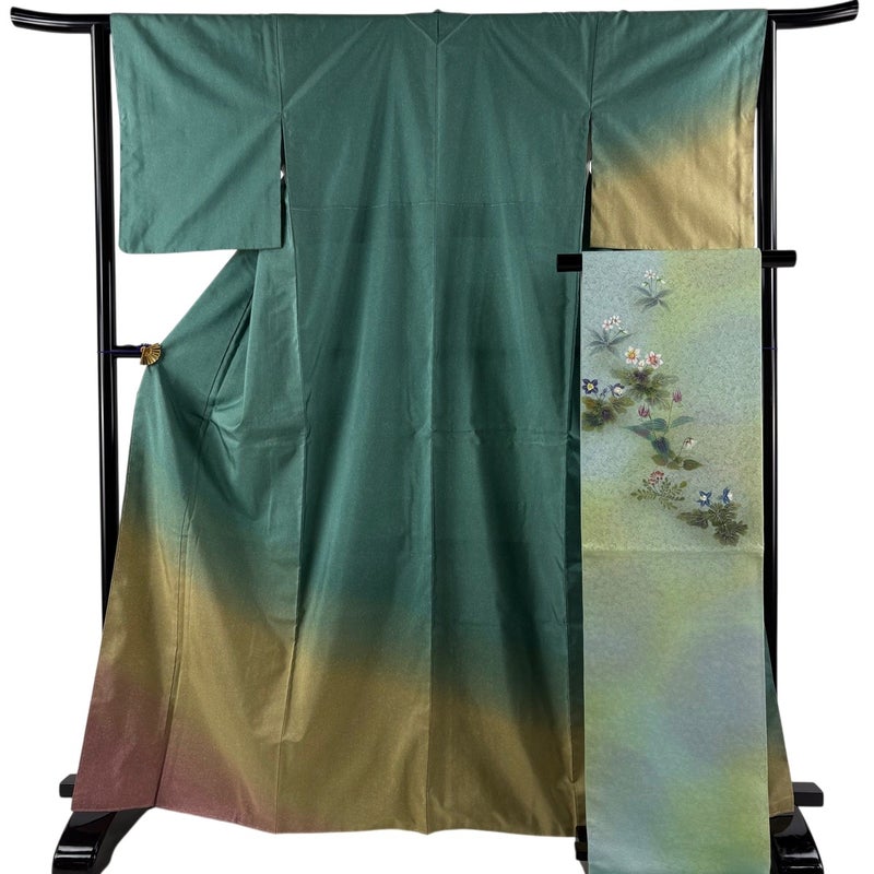 【付下げ】 緑系 緑 秀品 A 約160cm~約169cm 裄丈63cm-64cm (S)size 袖丈49cm 9990-29990 美品 五万以下