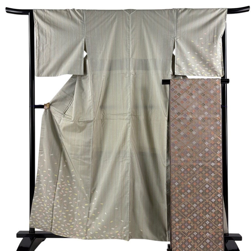 【付下げ】 灰色系 灰緑 秀品 A 約150cm~約159cm 裄丈66cm (M)size 袖丈49cm 9990-29990 美品 五万以下