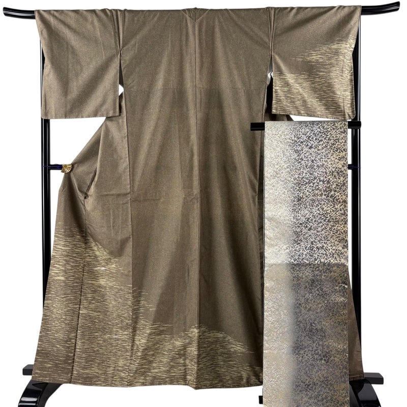 【付下げ】 茶系 薄茶色 秀品 A 約160cm~約169cm 裄丈67cm-68cm (L)size 袖丈49cm 9990-29990 美品 五万以下