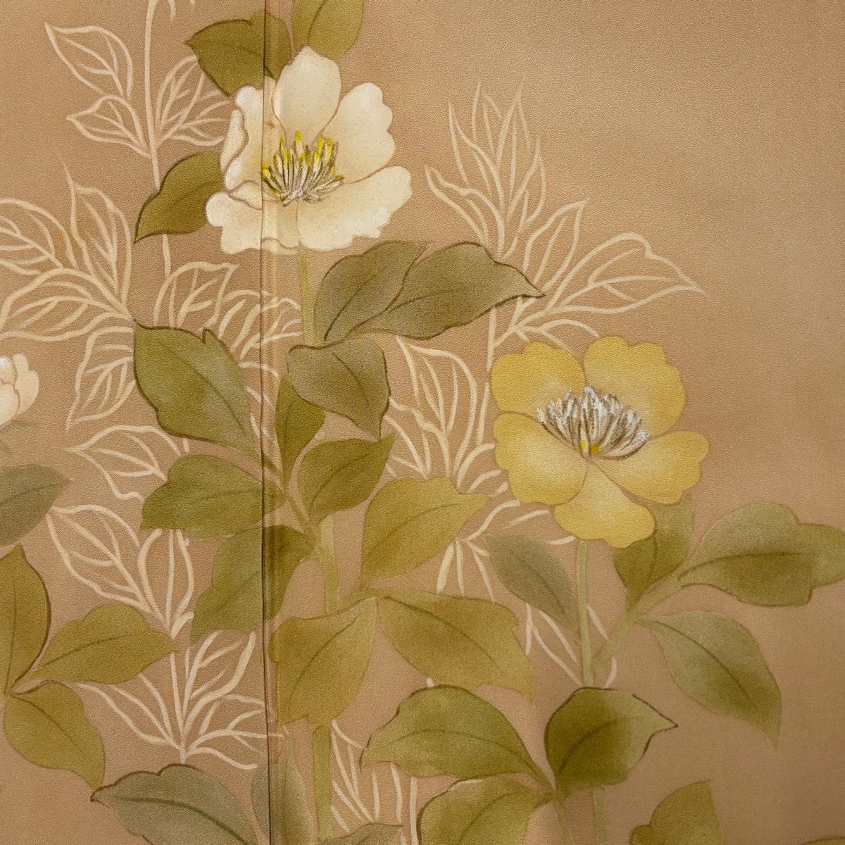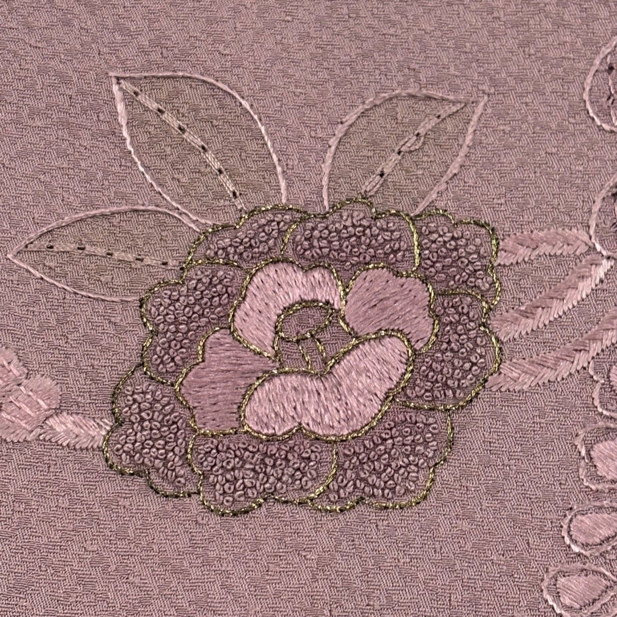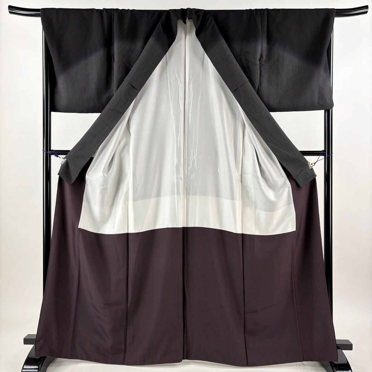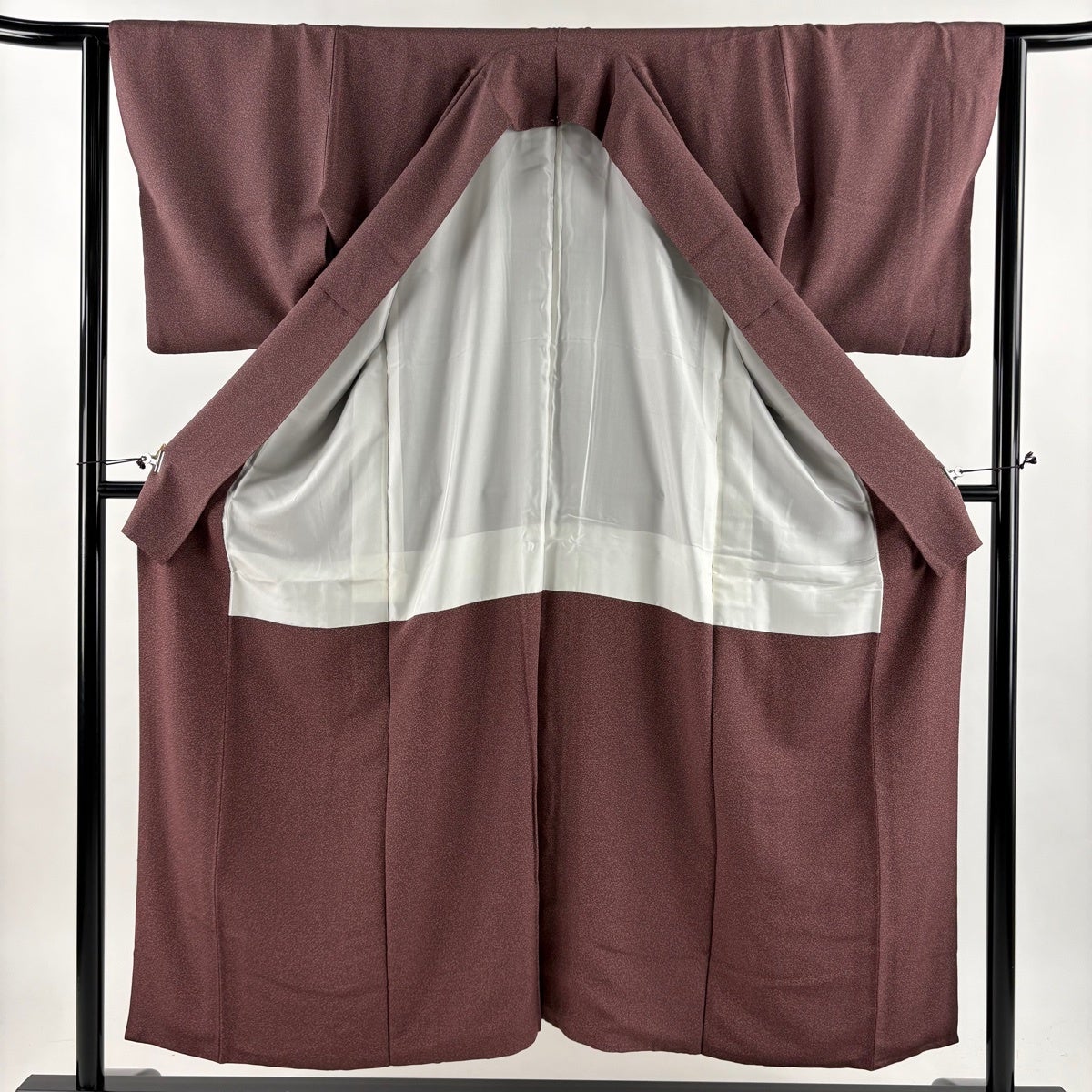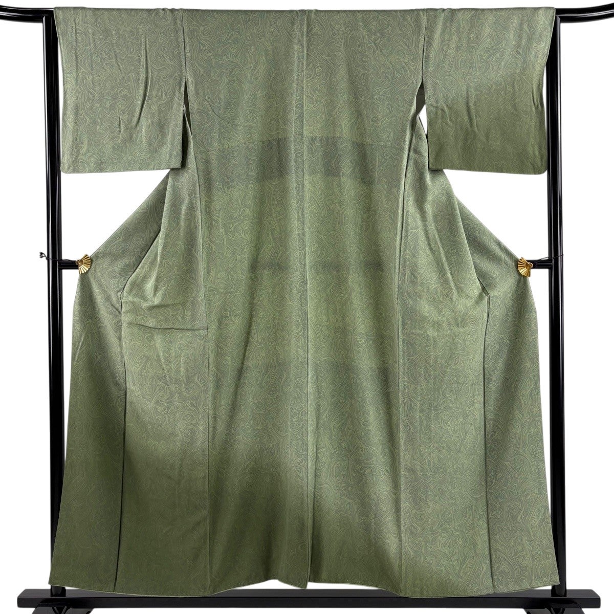 付け下げは訪問着を簡略化した訪問着より格が低くで小紋より格の高いの着物です。 特徴としては仕立て方の違いから訪問着などの一度真っさらな反物を着物の形に仮仕立てした後に柄付けをする絵羽模様とは違い、反物の状態で着用した時に柄付けが全て上を向くように書く事により左右の身頃や肩から袖にかけての模様が繋がっていない事です。 付け下げの歴史は他の着物に比べ浅く、戦時下に華美な訪問着が禁止された事で生まれた着物で、その後訪問着に比べ比較的安価で、それでいて着用シーンも訪問着とほぼ変わらないため大変好評になり、付け下げ訪問着と呼ばれる華やかな柄付けのものも考案された事により普及していきました。