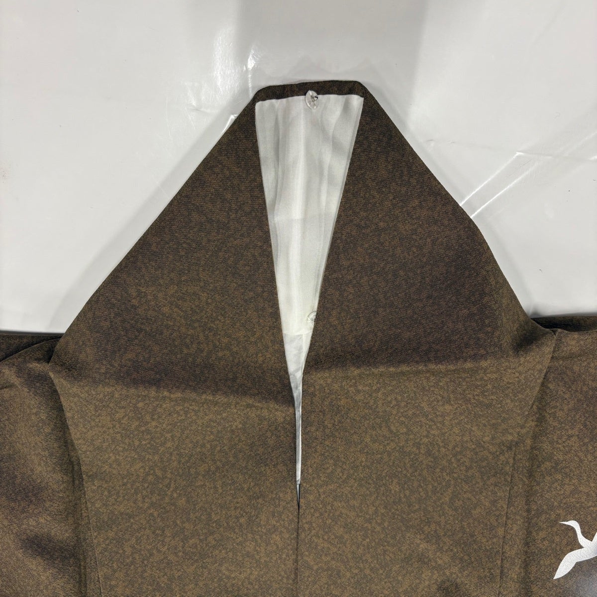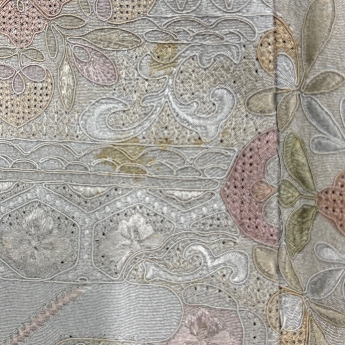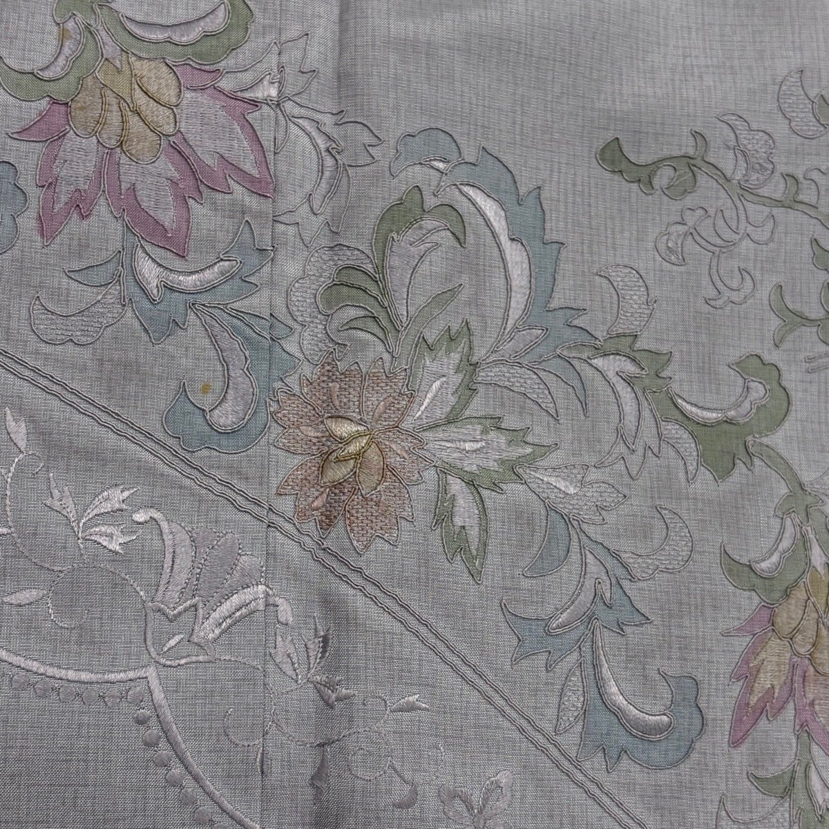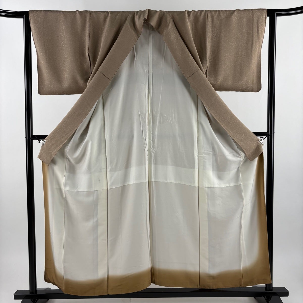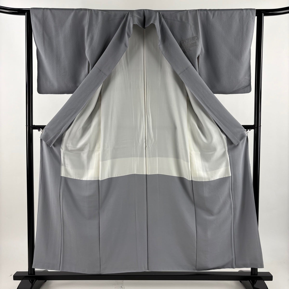 付け下げは訪問着を簡略化した訪問着より格が低くで小紋より格の高いの着物です。 特徴としては仕立て方の違いから訪問着などの一度真っさらな反物を着物の形に仮仕立てした後に柄付けをする絵羽模様とは違い、反物の状態で着用した時に柄付けが全て上を向くように書く事により左右の身頃や肩から袖にかけての模様が繋がっていない事です。 付け下げの歴史は他の着物に比べ浅く、戦時下に華美な訪問着が禁止された事で生まれた着物で、その後訪問着に比べ比較的安価で、それでいて着用シーンも訪問着とほぼ変わらないため大変好評になり、付け下げ訪問着と呼ばれる華やかな柄付けのものも考案された事により普及していきました。