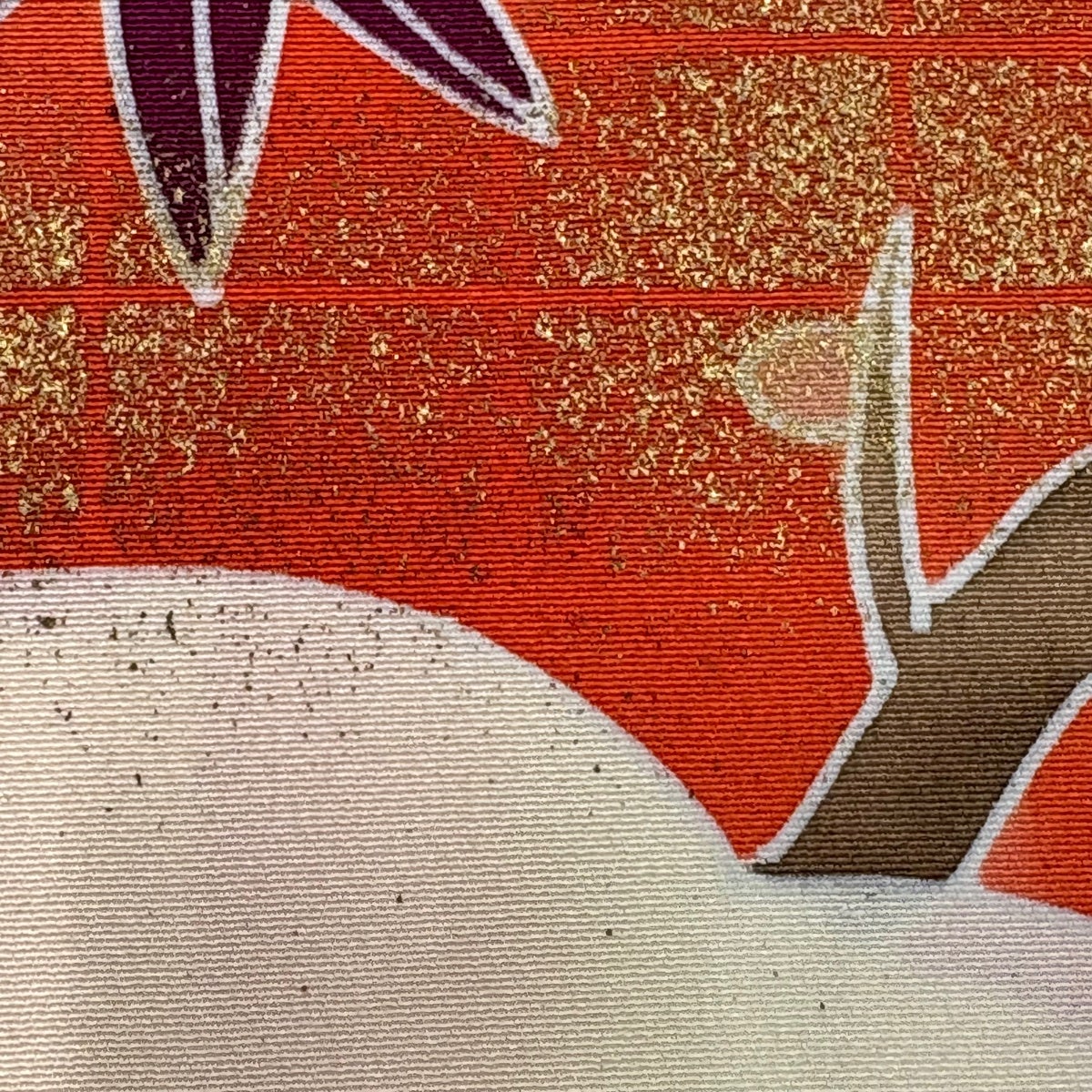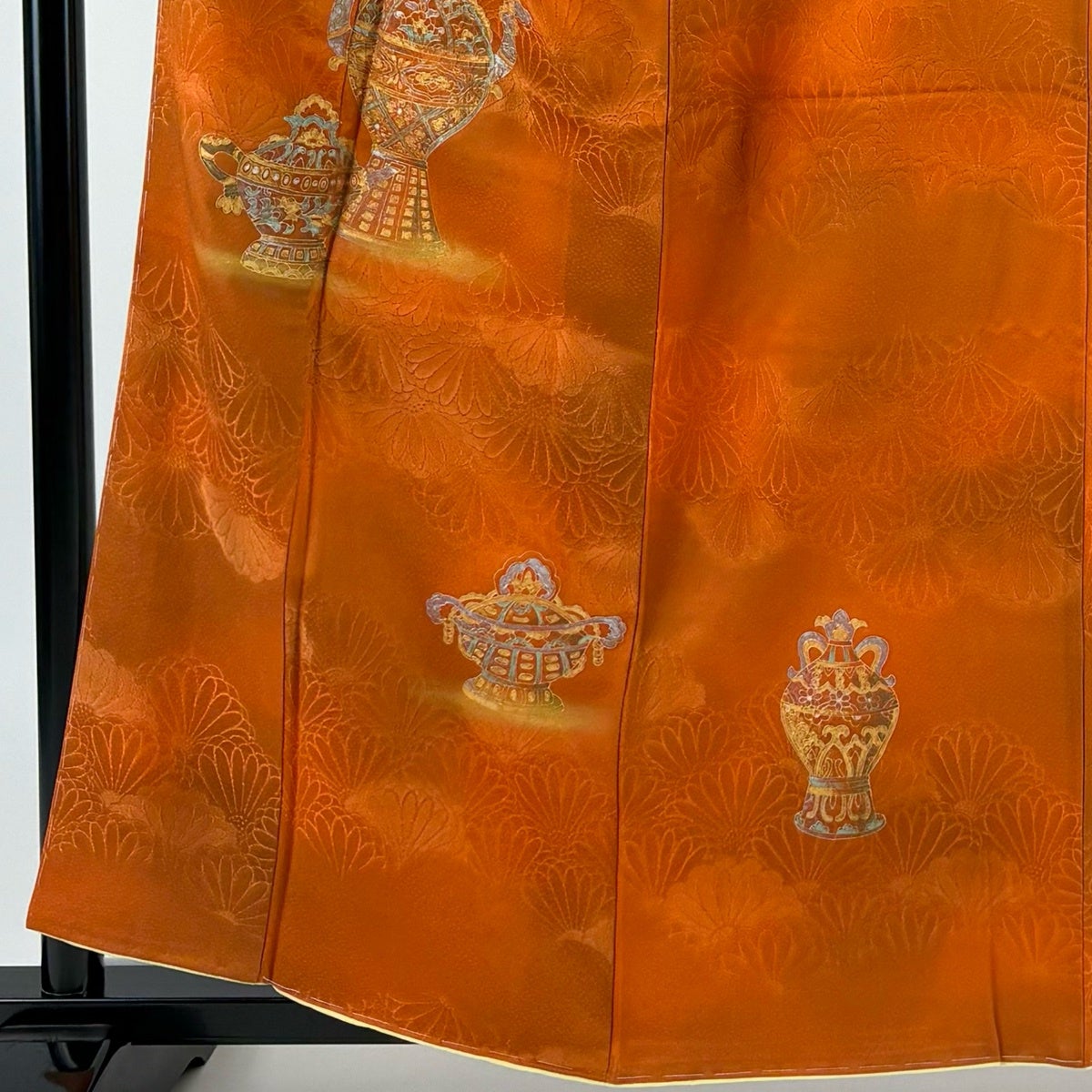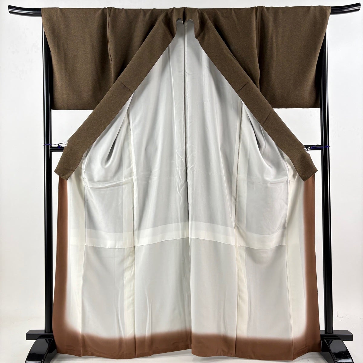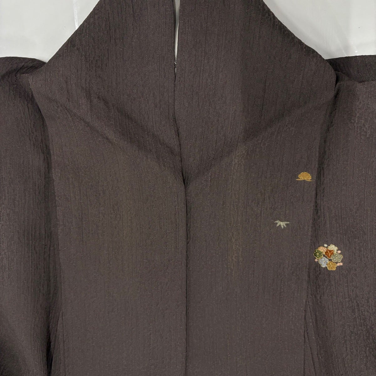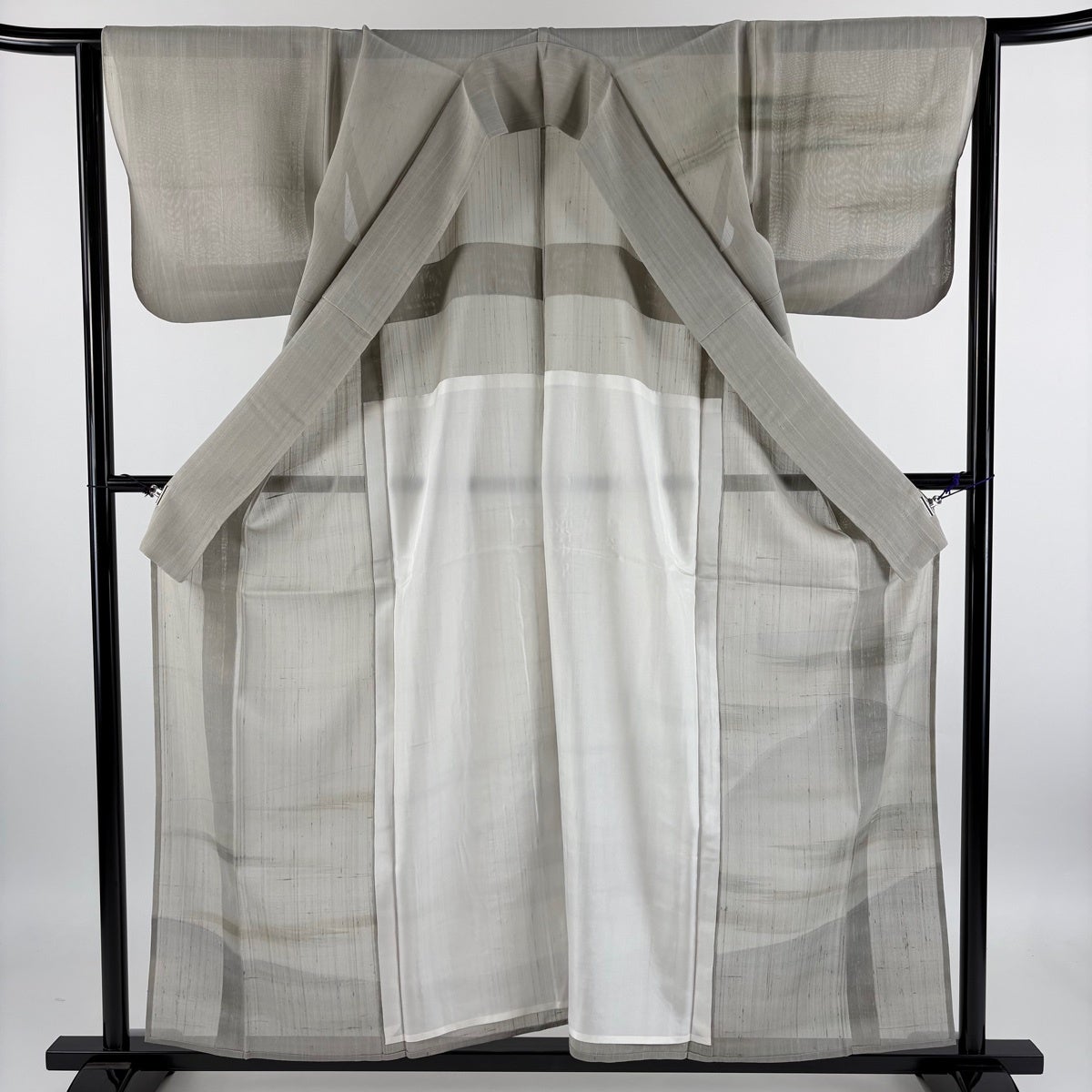 付け下げは訪問着を簡略化した訪問着より格が低くで小紋より格の高いの着物です。 特徴としては仕立て方の違いから訪問着などの一度真っさらな反物を着物の形に仮仕立てした後に柄付けをする絵羽模様とは違い、反物の状態で着用した時に柄付けが全て上を向くように書く事により左右の身頃や肩から袖にかけての模様が繋がっていない事です。 付け下げの歴史は他の着物に比べ浅く、戦時下に華美な訪問着が禁止された事で生まれた着物で、その後訪問着に比べ比較的安価で、それでいて着用シーンも訪問着とほぼ変わらないため大変好評になり、付け下げ訪問着と呼ばれる華やかな柄付けのものも考案された事により普及していきました。