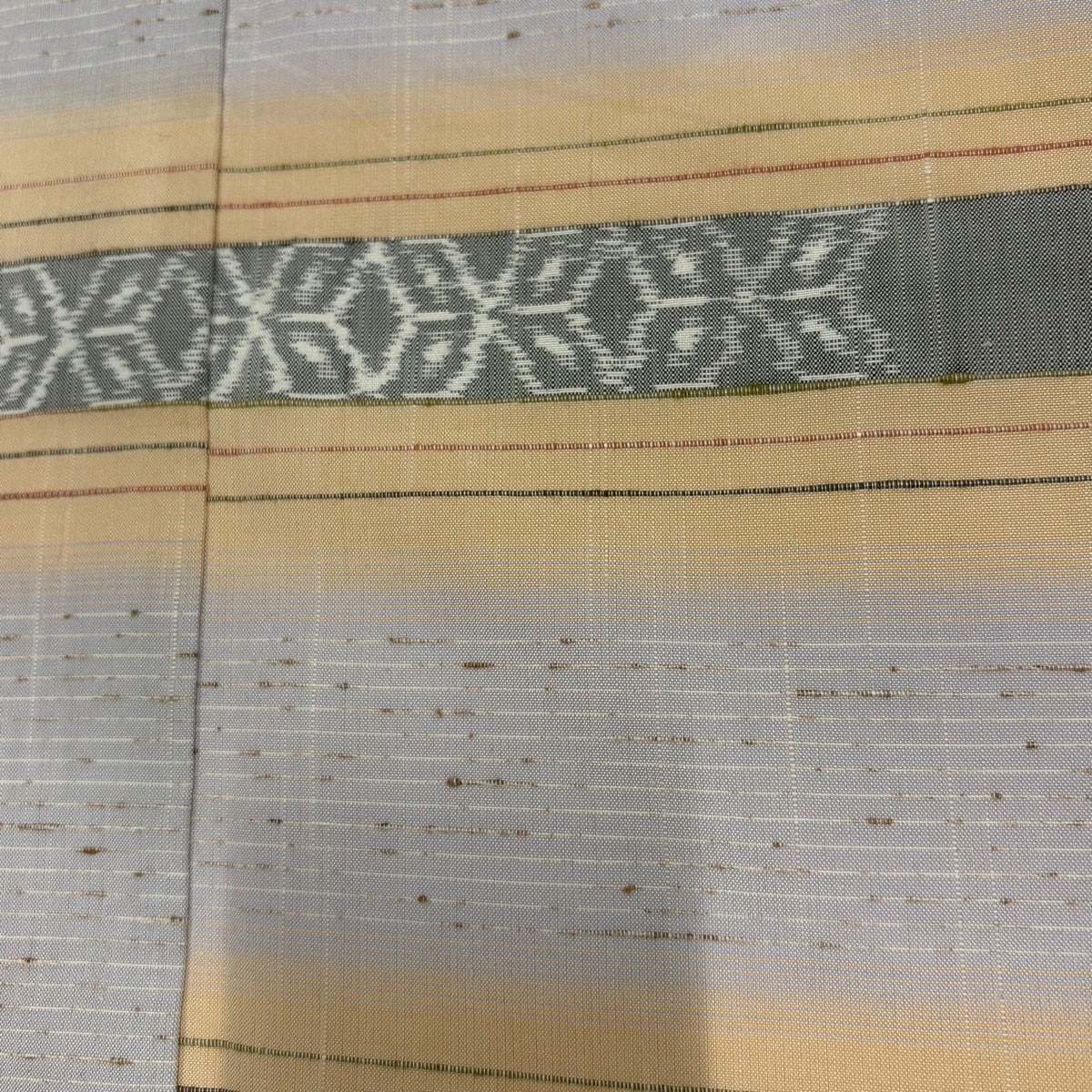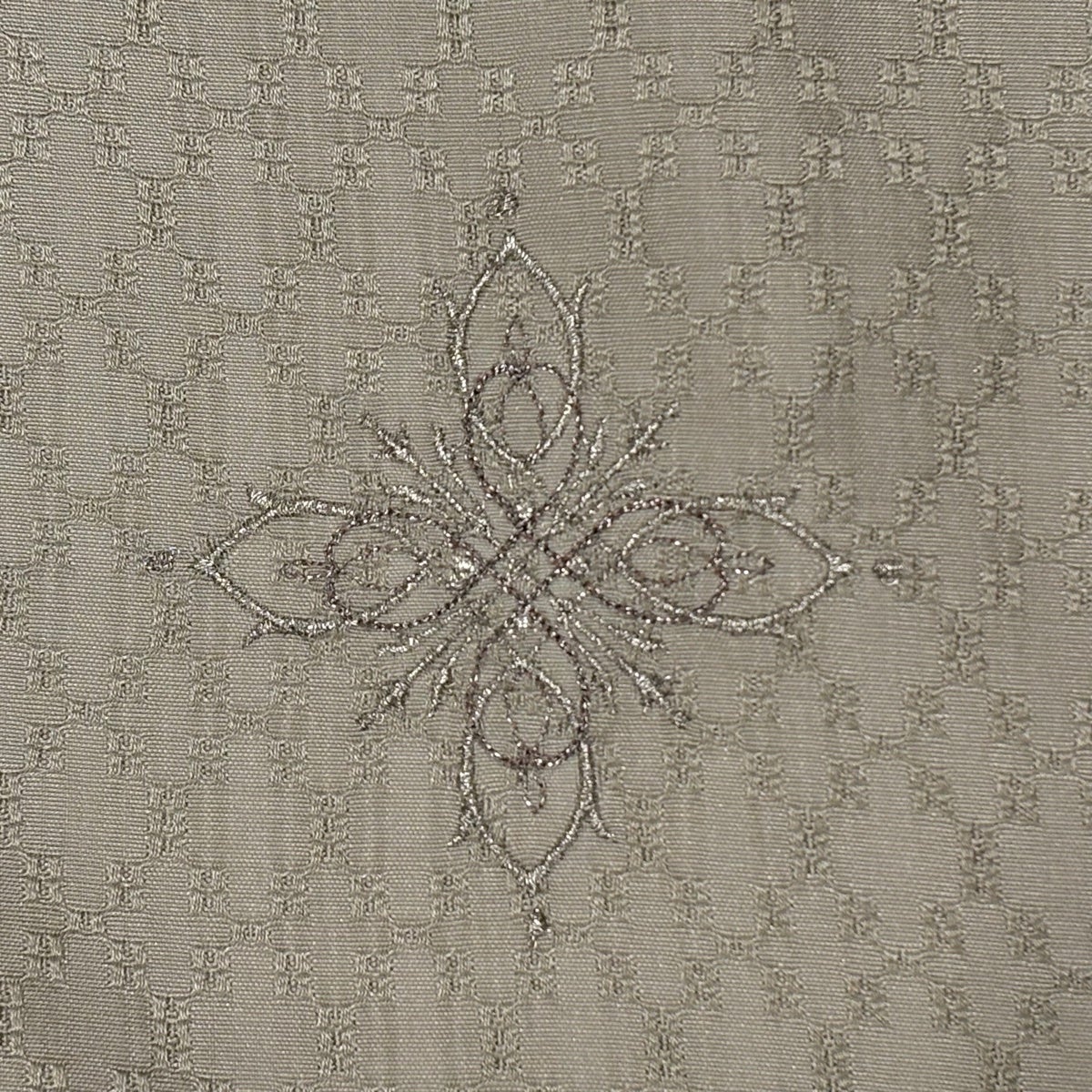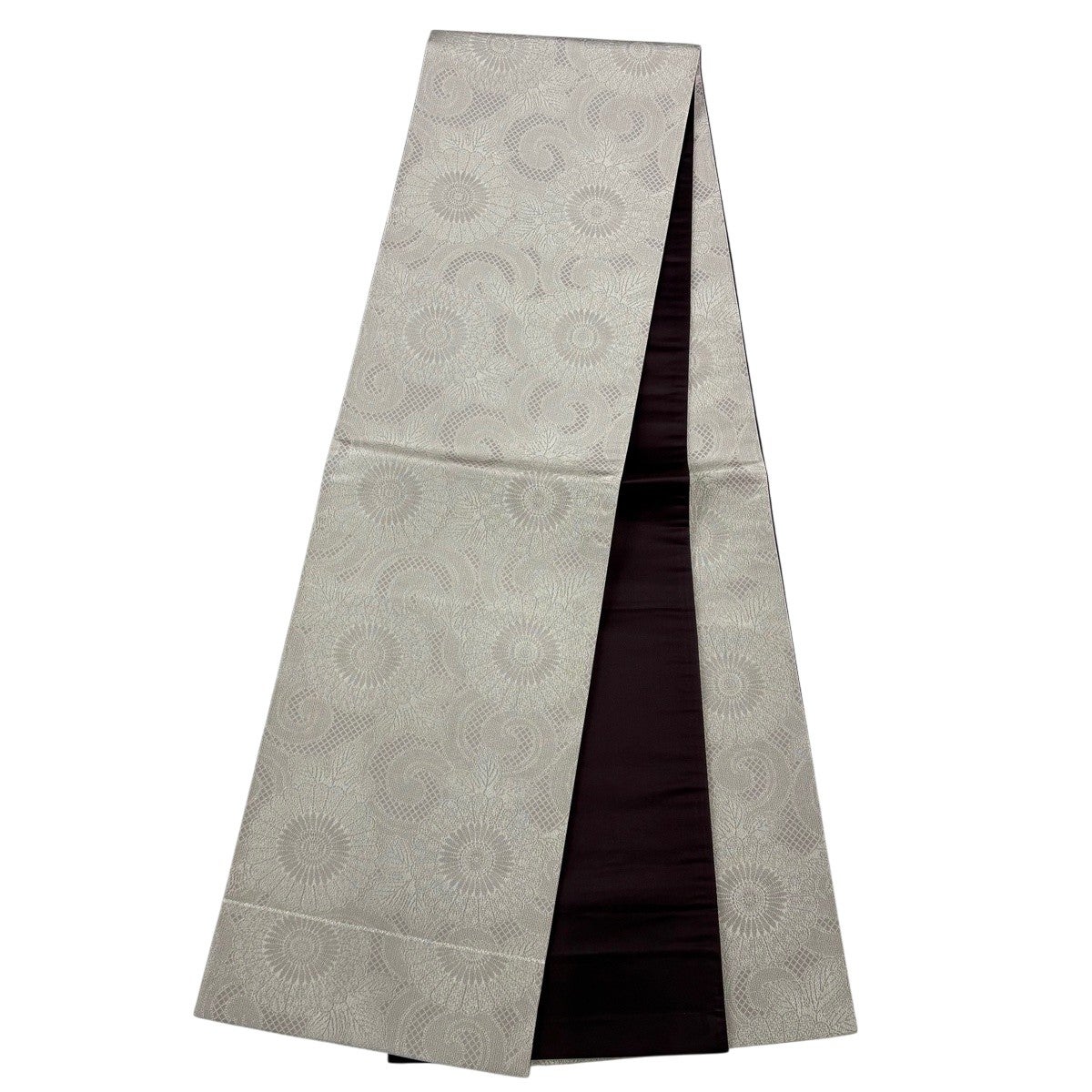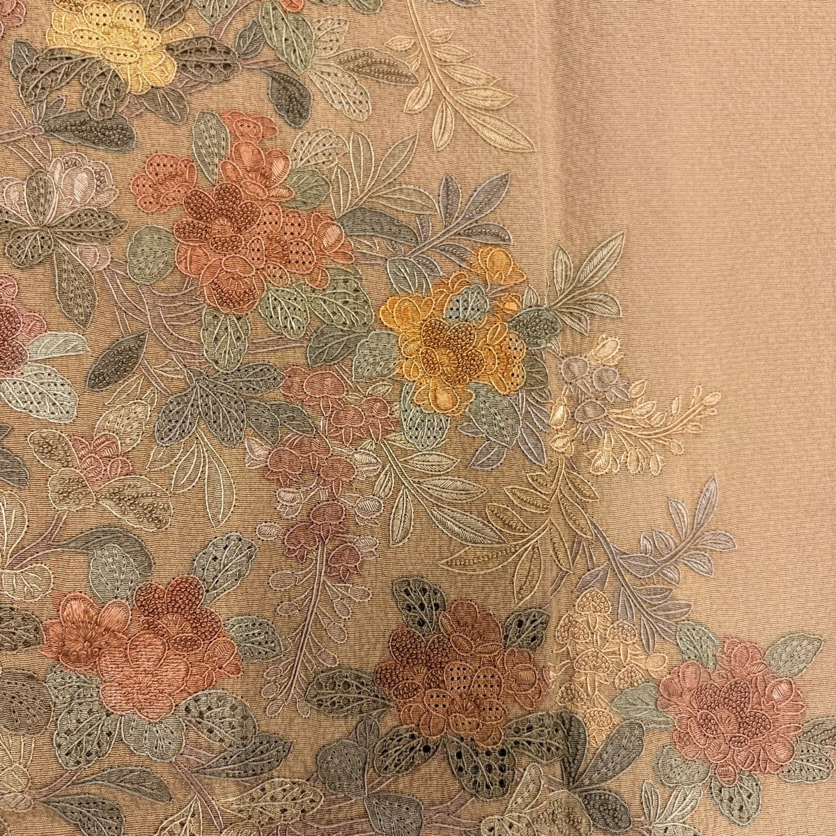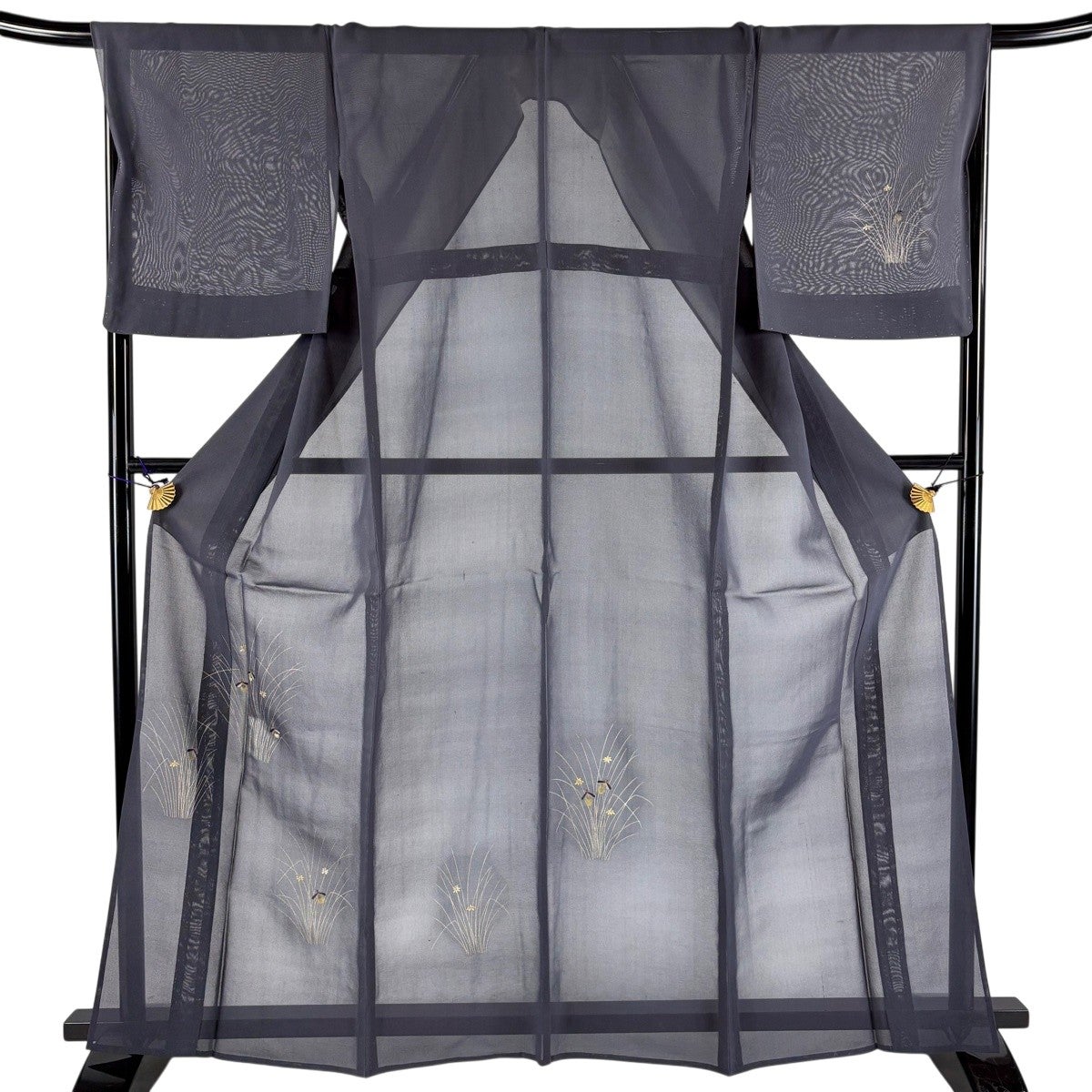 付け下げは訪問着を簡略化した訪問着より格が低くで小紋より格の高いの着物です。 特徴としては仕立て方の違いから訪問着などの一度真っさらな反物を着物の形に仮仕立てした後に柄付けをする絵羽模様とは違い、反物の状態で着用した時に柄付けが全て上を向くように書く事により左右の身頃や肩から袖にかけての模様が繋がっていない事です。 付け下げの歴史は他の着物に比べ浅く、戦時下に華美な訪問着が禁止された事で生まれた着物で、その後訪問着に比べ比較的安価で、それでいて着用シーンも訪問着とほぼ変わらないため大変好評になり、付け下げ訪問着と呼ばれる華やかな柄付けのものも考案された事により普及していきました。