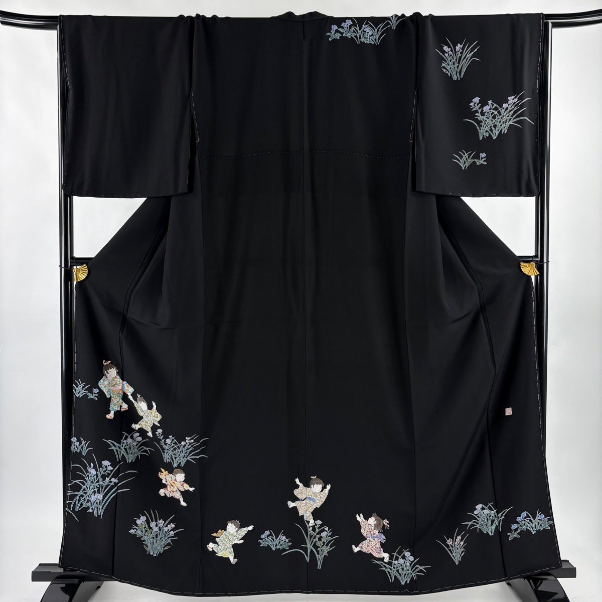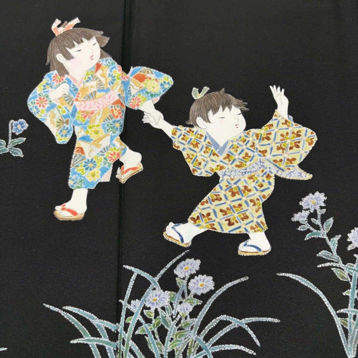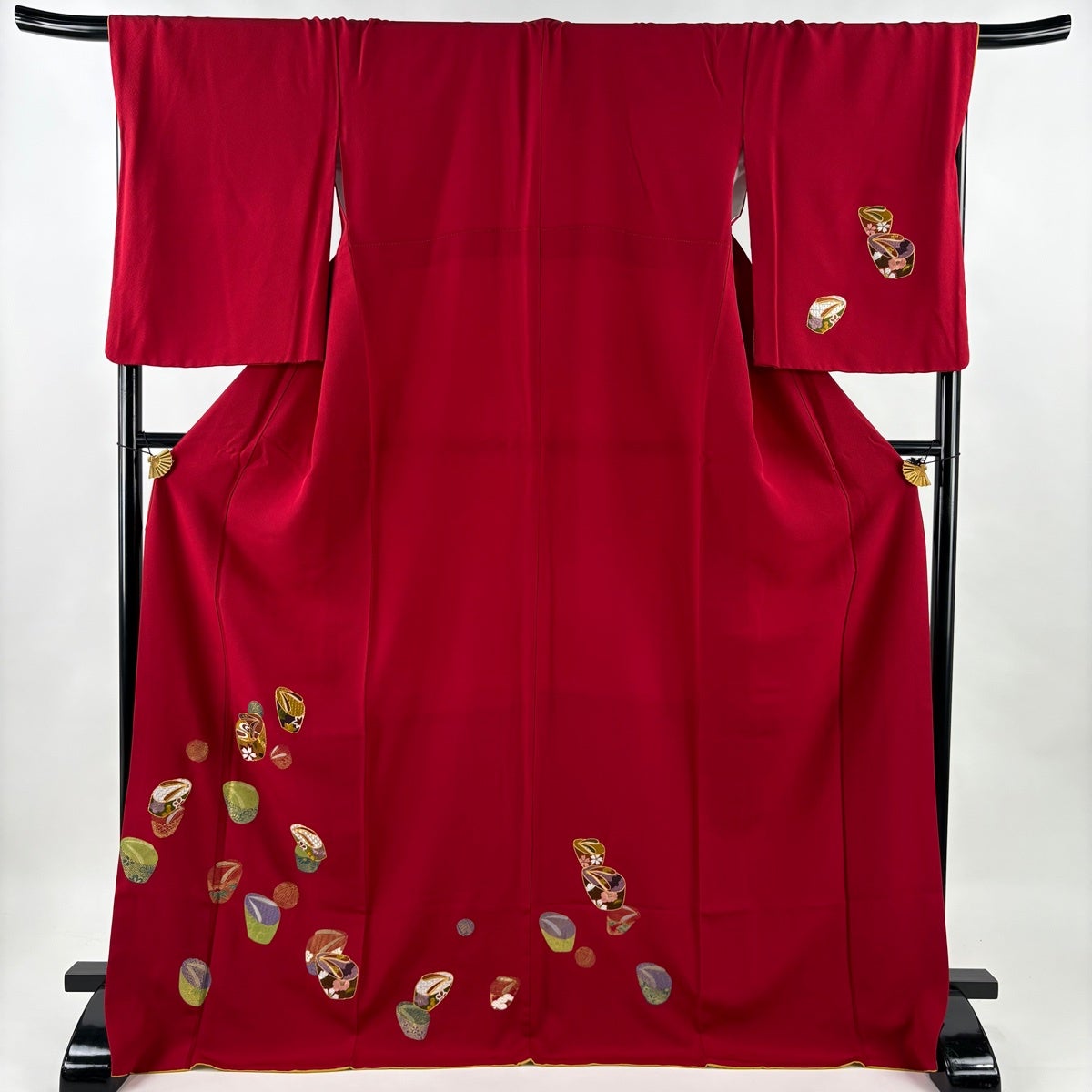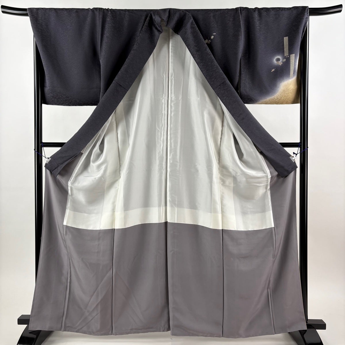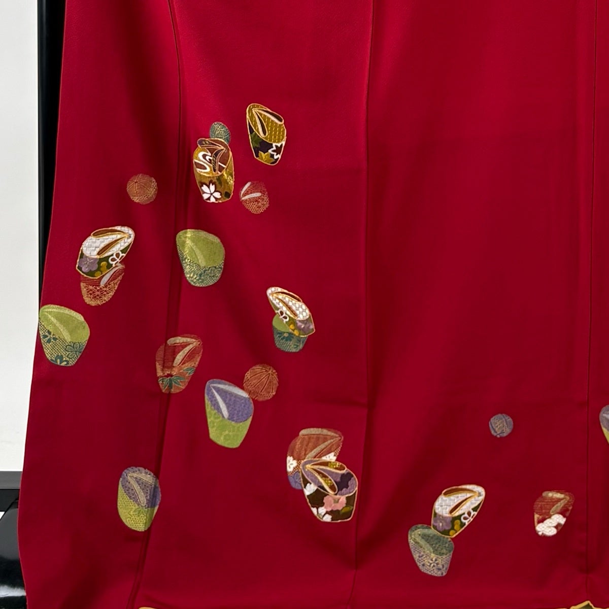 付け下げは訪問着を簡略化した訪問着より格が低くで小紋より格の高いの着物です。 特徴としては仕立て方の違いから訪問着などの一度真っさらな反物を着物の形に仮仕立てした後に柄付けをする絵羽模様とは違い、反物の状態で着用した時に柄付けが全て上を向くように書く事により左右の身頃や肩から袖にかけての模様が繋がっていない事です。 付け下げの歴史は他の着物に比べ浅く、戦時下に華美な訪問着が禁止された事で生まれた着物で、その後訪問着に比べ比較的安価で、それでいて着用シーンも訪問着とほぼ変わらないため大変好評になり、付け下げ訪問着と呼ばれる華やかな柄付けのものも考案された事により普及していきました。