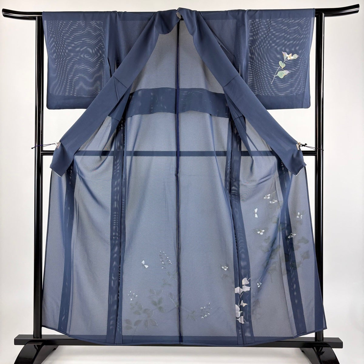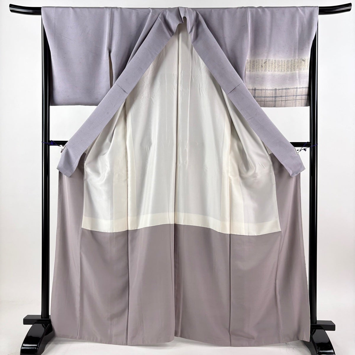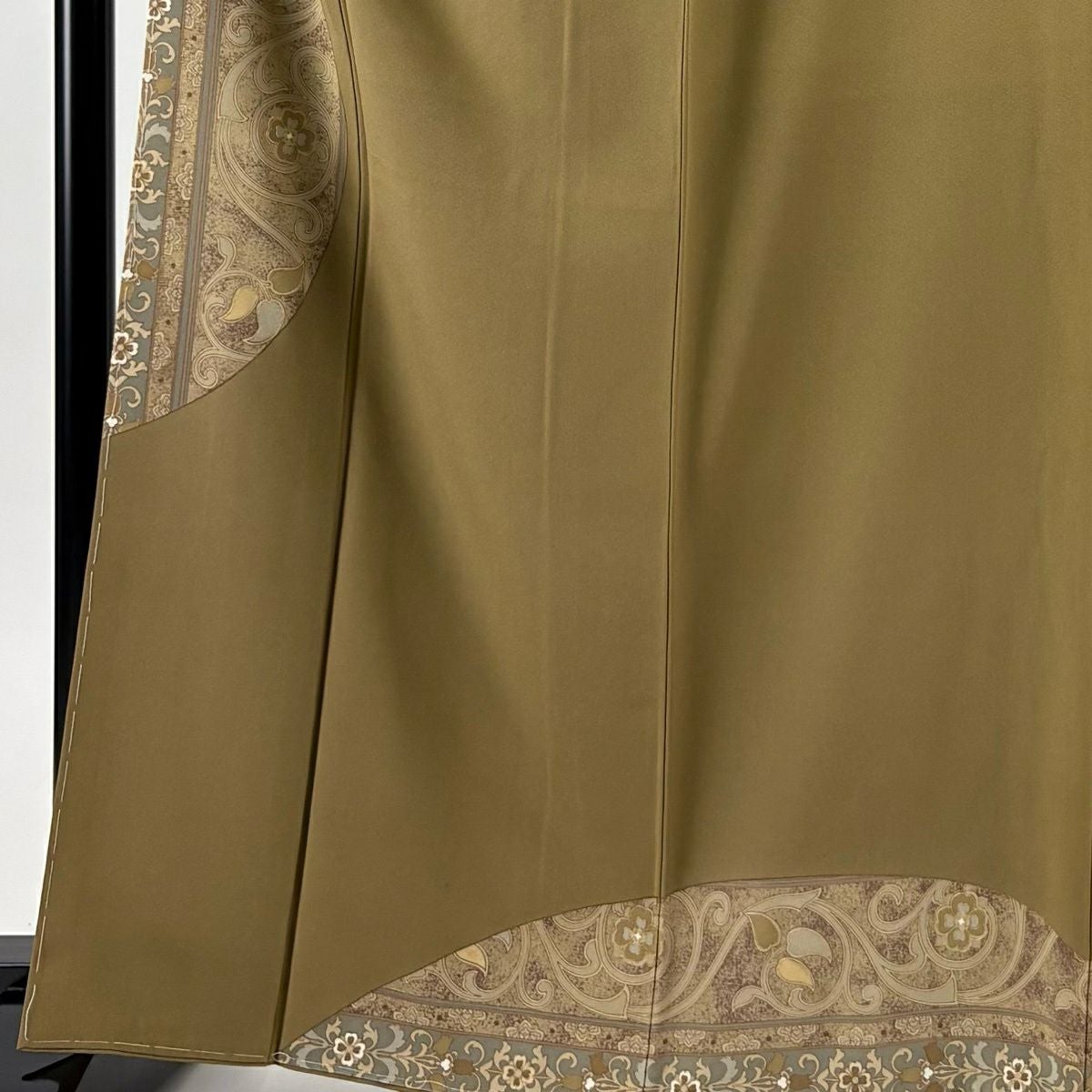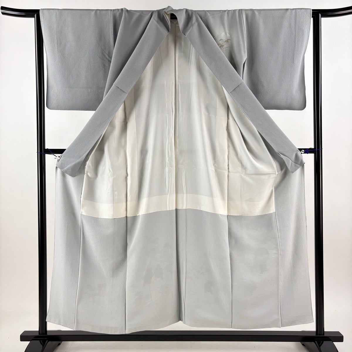 付け下げは訪問着を簡略化した訪問着より格が低くで小紋より格の高いの着物です。 特徴としては仕立て方の違いから訪問着などの一度真っさらな反物を着物の形に仮仕立てした後に柄付けをする絵羽模様とは違い、反物の状態で着用した時に柄付けが全て上を向くように書く事により左右の身頃や肩から袖にかけての模様が繋がっていない事です。 付け下げの歴史は他の着物に比べ浅く、戦時下に華美な訪問着が禁止された事で生まれた着物で、その後訪問着に比べ比較的安価で、それでいて着用シーンも訪問着とほぼ変わらないため大変好評になり、付け下げ訪問着と呼ばれる華やかな柄付けのものも考案された事により普及していきました。