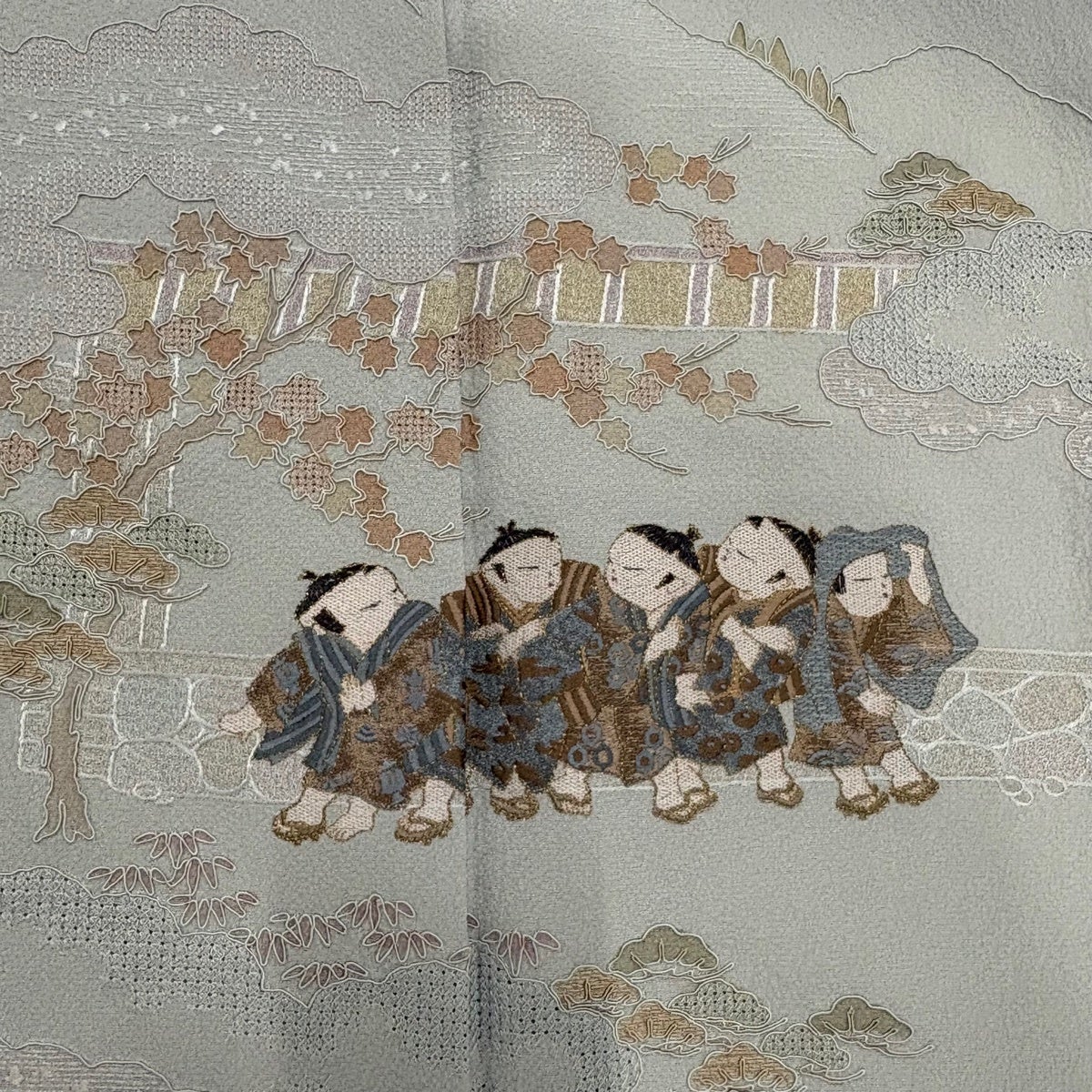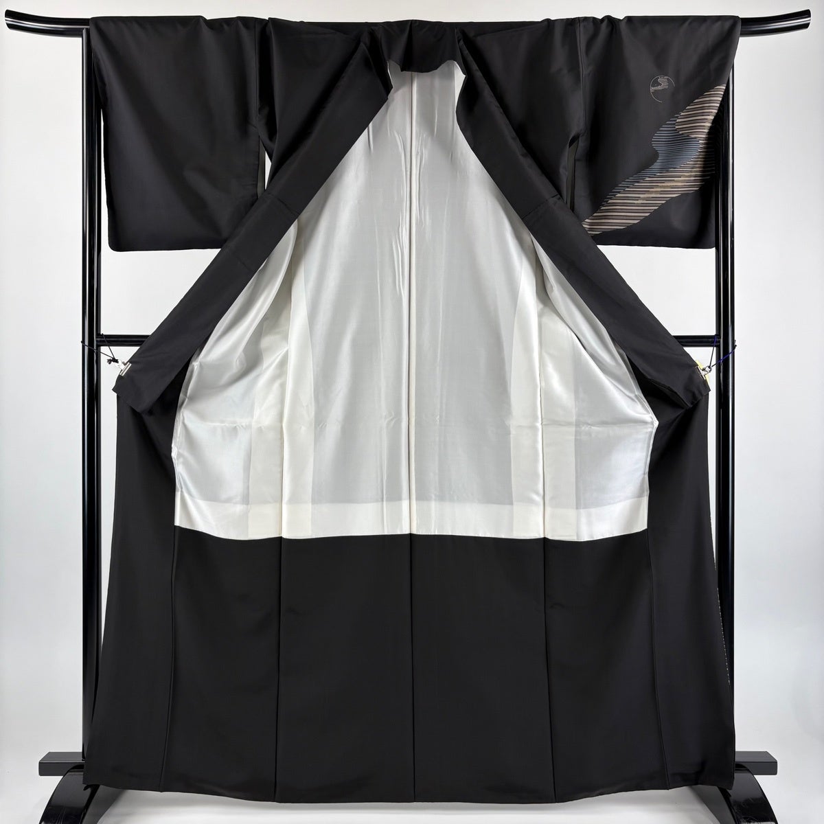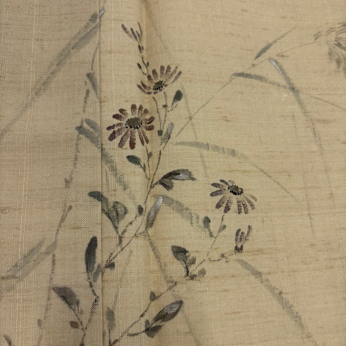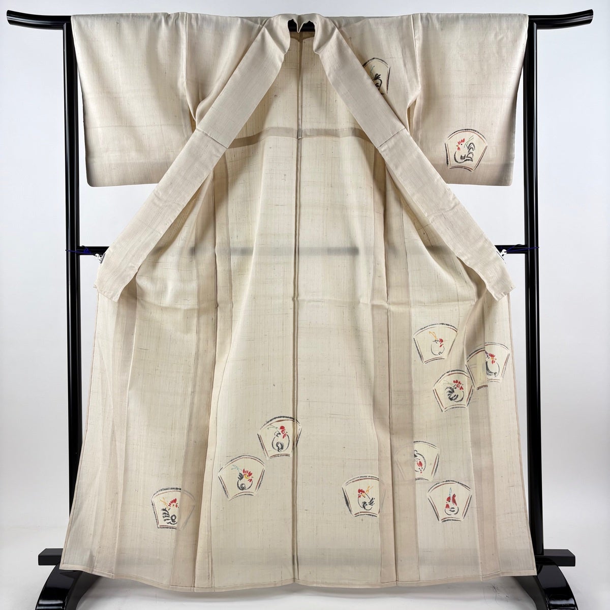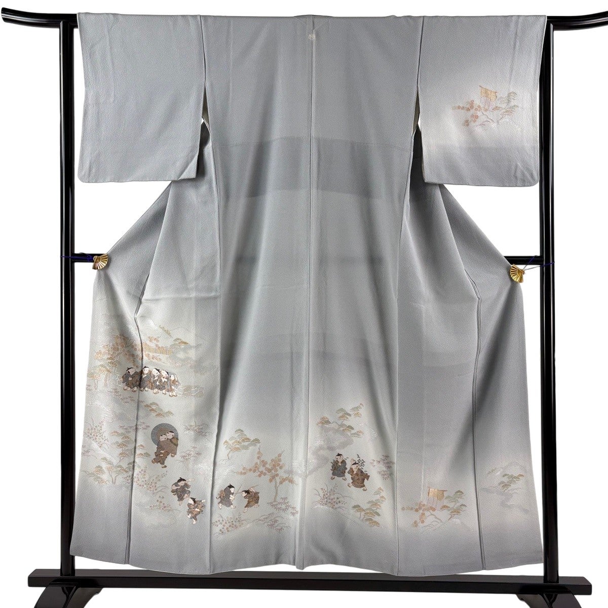 付け下げは訪問着を簡略化した訪問着より格が低くで小紋より格の高いの着物です。 特徴としては仕立て方の違いから訪問着などの一度真っさらな反物を着物の形に仮仕立てした後に柄付けをする絵羽模様とは違い、反物の状態で着用した時に柄付けが全て上を向くように書く事により左右の身頃や肩から袖にかけての模様が繋がっていない事です。 付け下げの歴史は他の着物に比べ浅く、戦時下に華美な訪問着が禁止された事で生まれた着物で、その後訪問着に比べ比較的安価で、それでいて着用シーンも訪問着とほぼ変わらないため大変好評になり、付け下げ訪問着と呼ばれる華やかな柄付けのものも考案された事により普及していきました。
