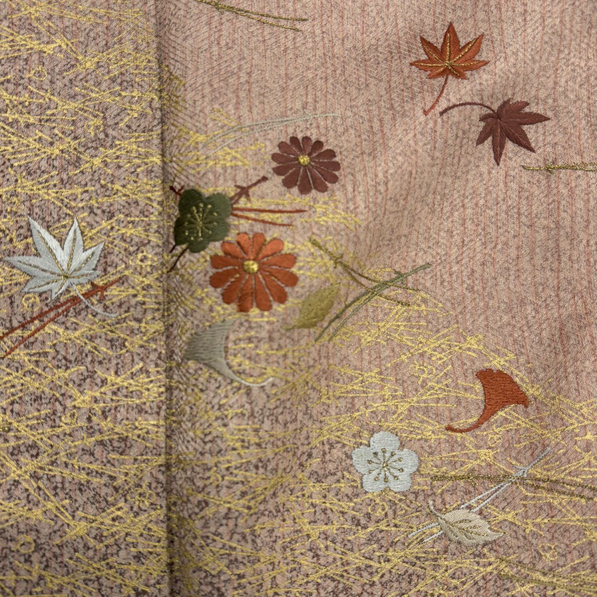 付け下げは訪問着を簡略化した訪問着より格が低くで小紋より格の高いの着物です。 特徴としては仕立て方の違いから訪問着などの一度真っさらな反物を着物の形に仮仕立てした後に柄付けをする絵羽模様とは違い、反物の状態で着用した時に柄付けが全て上を向くように書く事により左右の身頃や肩から袖にかけての模様が繋がっていない事です。 付け下げの歴史は他の着物に比べ浅く、戦時下に華美な訪問着が禁止された事で生まれた着物で、その後訪問着に比べ比較的安価で、それでいて着用シーンも訪問着とほぼ変わらないため大変好評になり、付け下げ訪問着と呼ばれる華やかな柄付けのものも考案された事により普及していきました。