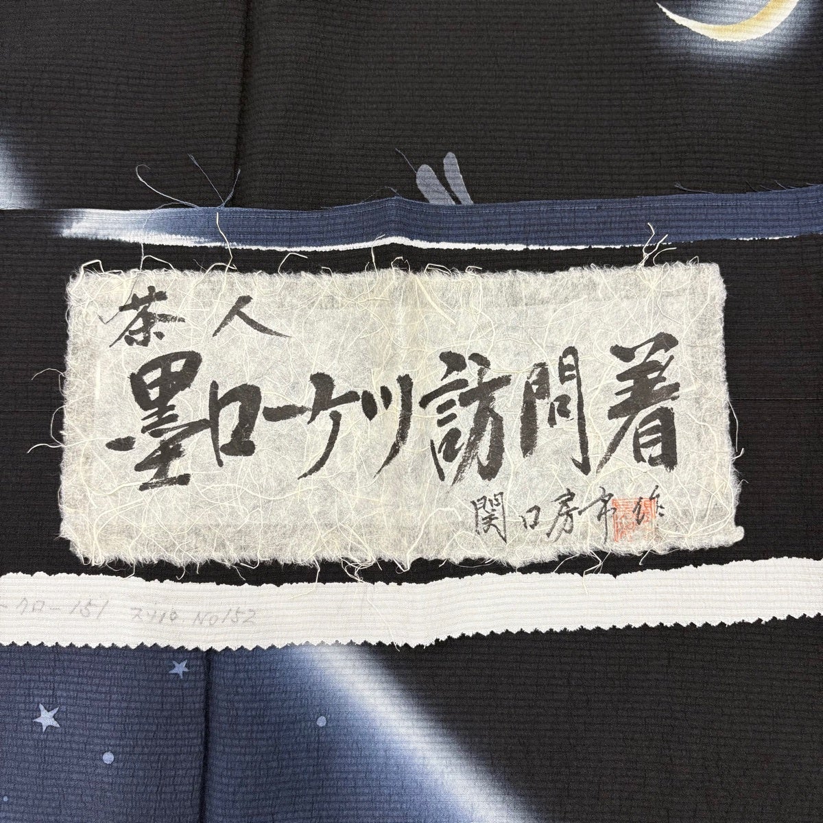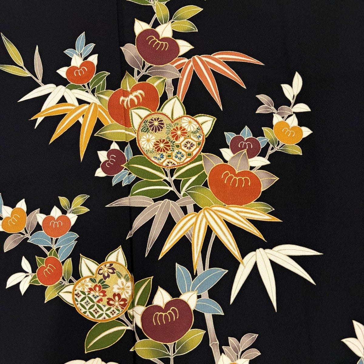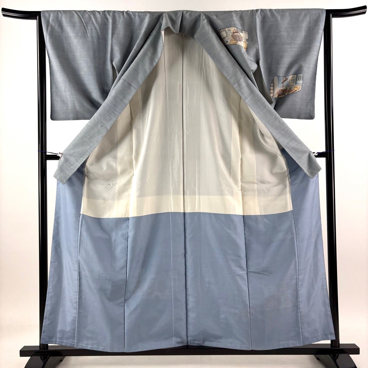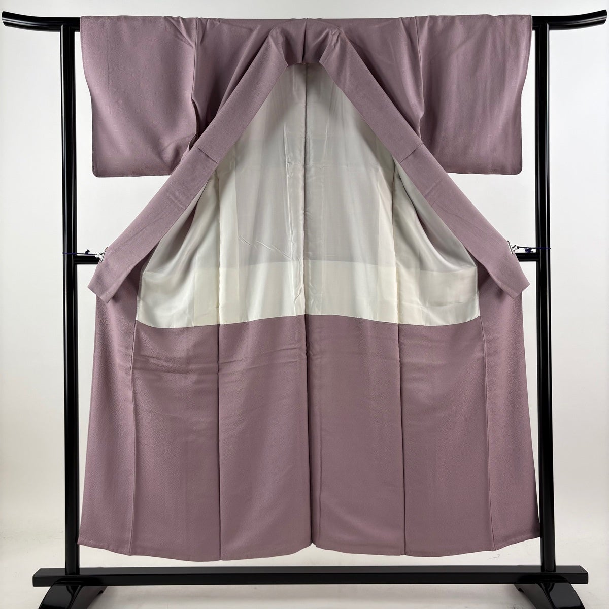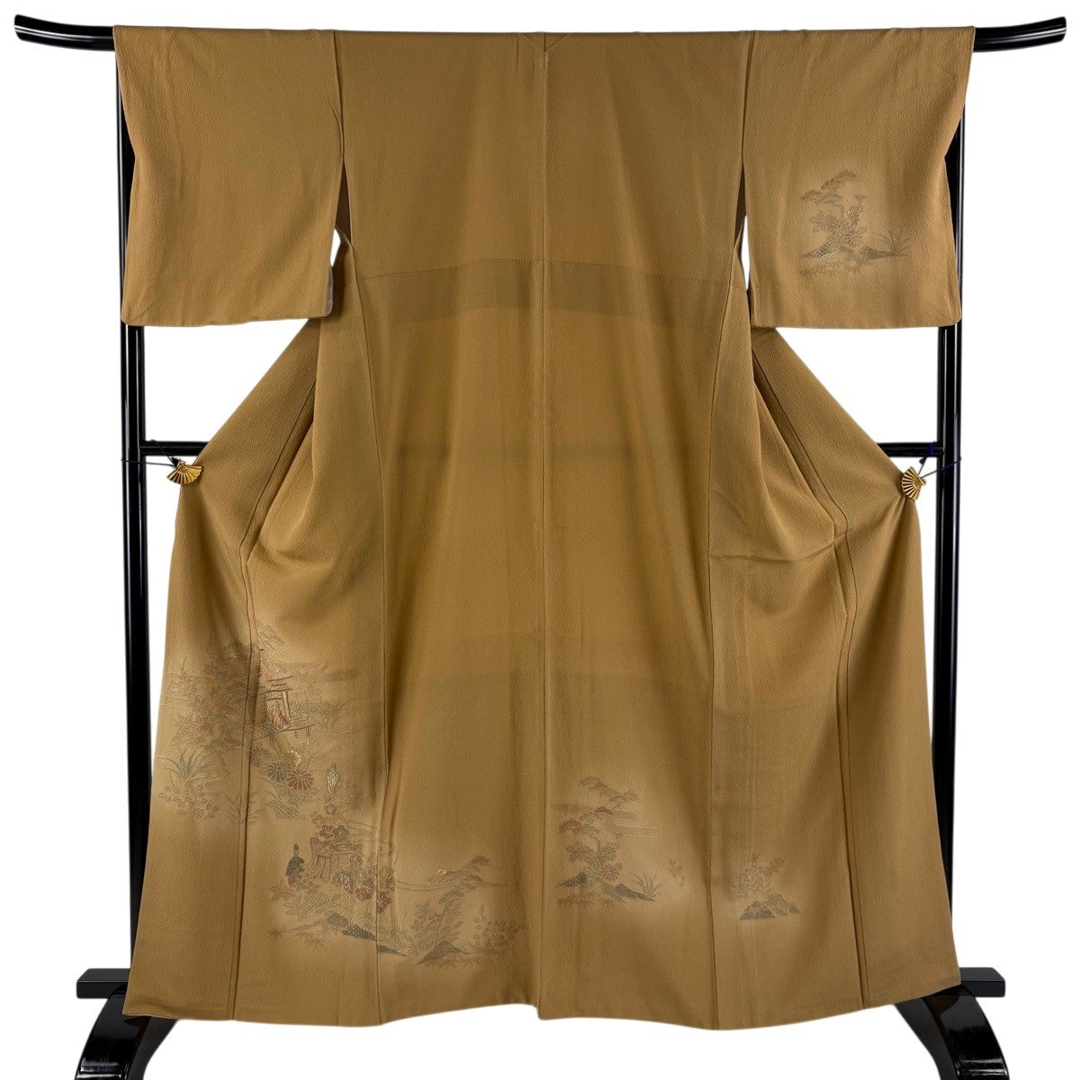 付け下げは訪問着を簡略化した訪問着より格が低くで小紋より格の高いの着物です。 特徴としては仕立て方の違いから訪問着などの一度真っさらな反物を着物の形に仮仕立てした後に柄付けをする絵羽模様とは違い、反物の状態で着用した時に柄付けが全て上を向くように書く事により左右の身頃や肩から袖にかけての模様が繋がっていない事です。 付け下げの歴史は他の着物に比べ浅く、戦時下に華美な訪問着が禁止された事で生まれた着物で、その後訪問着に比べ比較的安価で、それでいて着用シーンも訪問着とほぼ変わらないため大変好評になり、付け下げ訪問着と呼ばれる華やかな柄付けのものも考案された事により普及していきました。