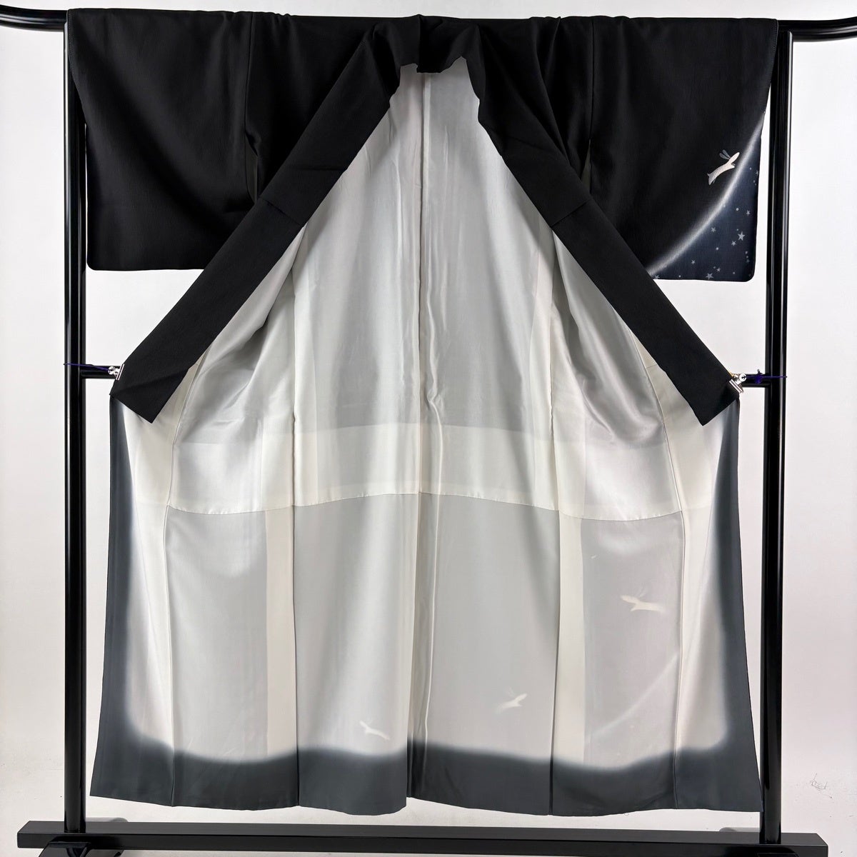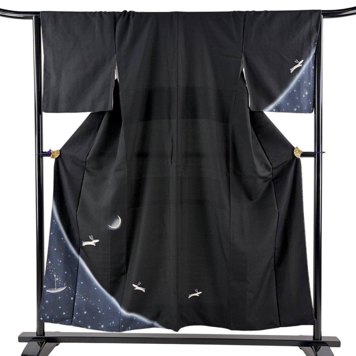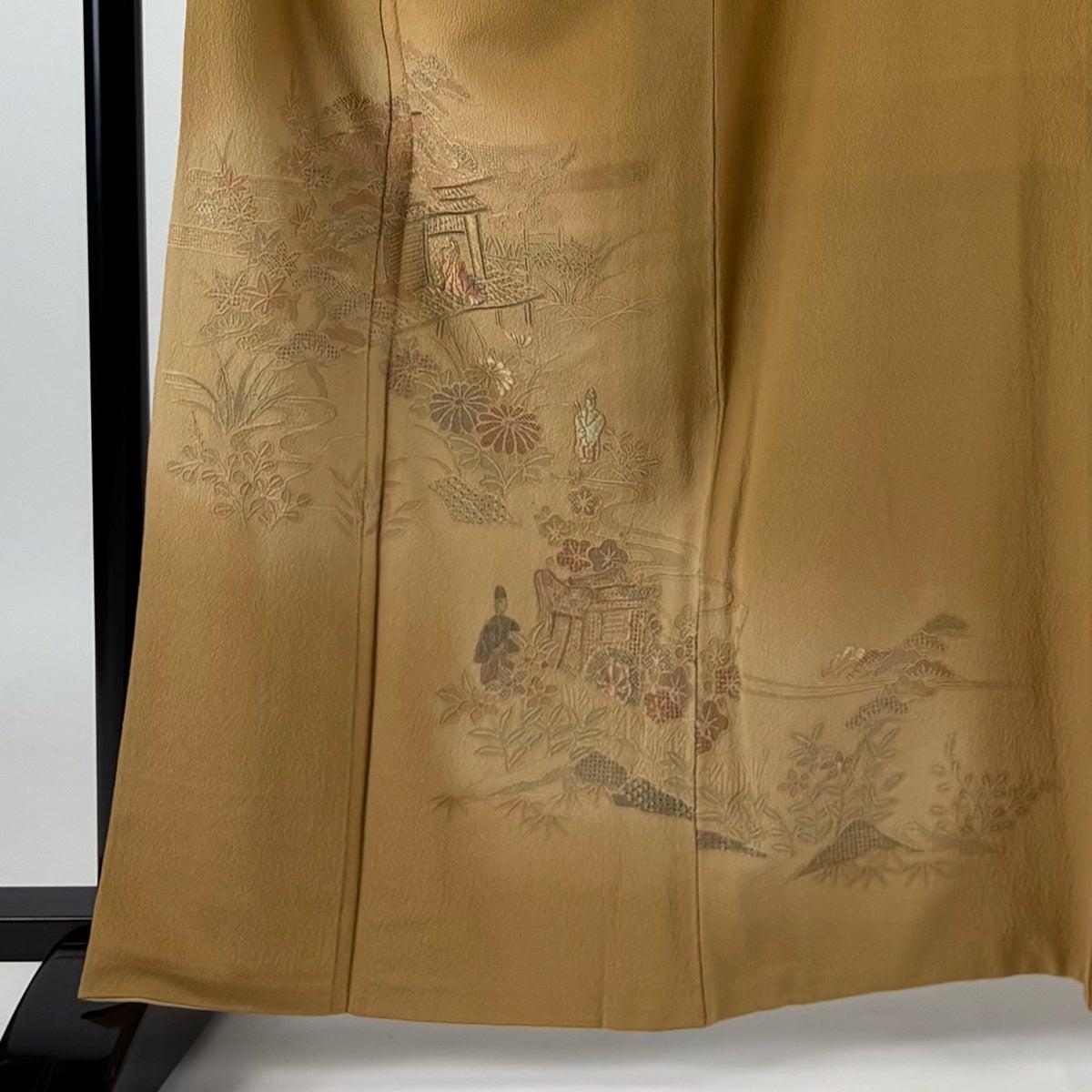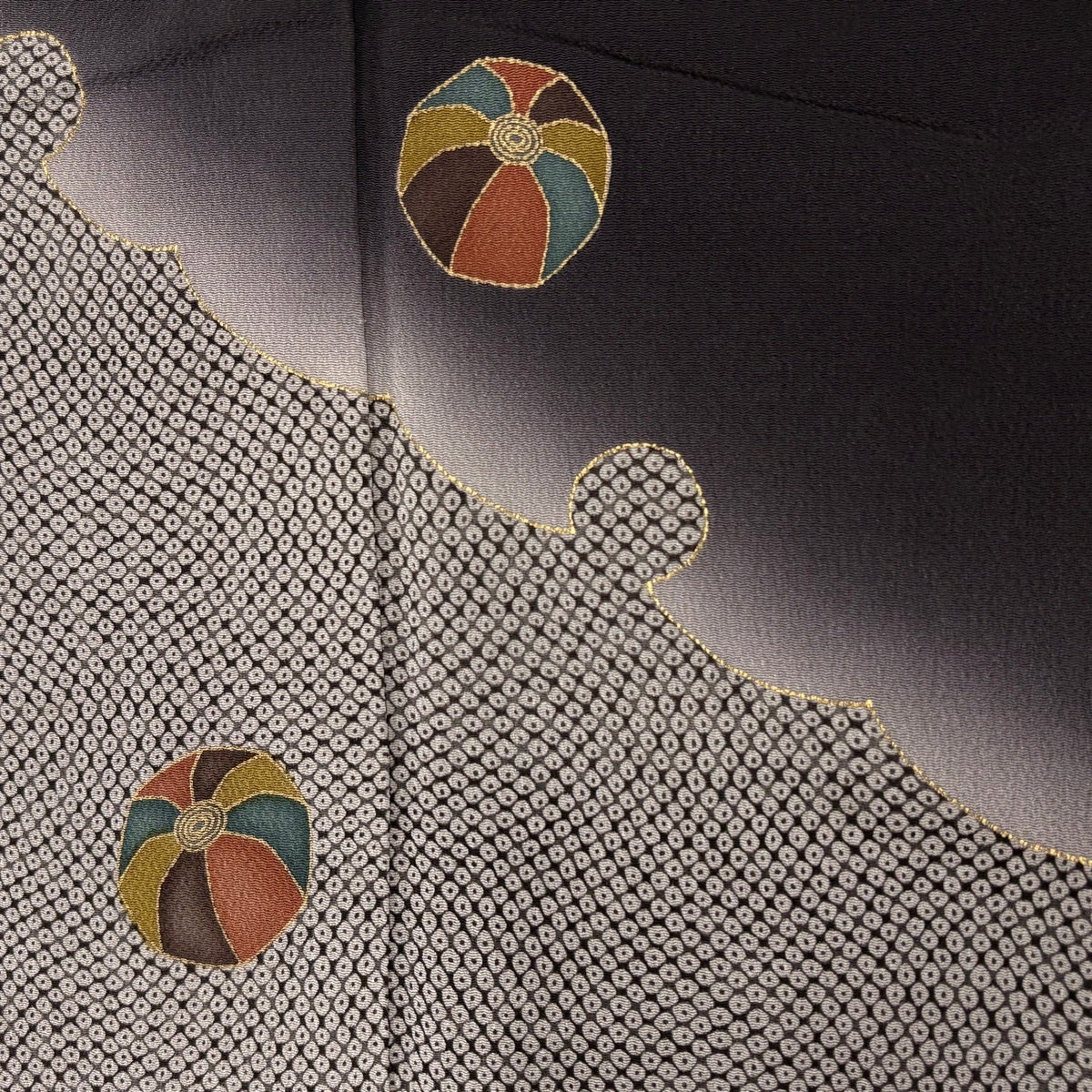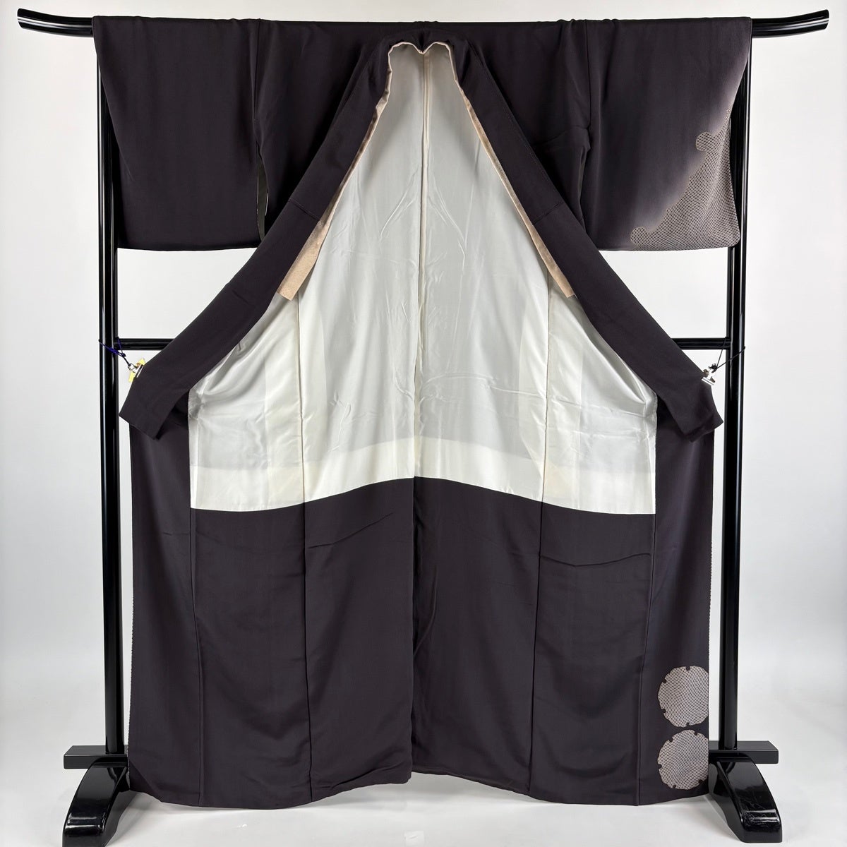 付け下げは訪問着を簡略化した訪問着より格が低くで小紋より格の高いの着物です。 特徴としては仕立て方の違いから訪問着などの一度真っさらな反物を着物の形に仮仕立てした後に柄付けをする絵羽模様とは違い、反物の状態で着用した時に柄付けが全て上を向くように書く事により左右の身頃や肩から袖にかけての模様が繋がっていない事です。 付け下げの歴史は他の着物に比べ浅く、戦時下に華美な訪問着が禁止された事で生まれた着物で、その後訪問着に比べ比較的安価で、それでいて着用シーンも訪問着とほぼ変わらないため大変好評になり、付け下げ訪問着と呼ばれる華やかな柄付けのものも考案された事により普及していきました。