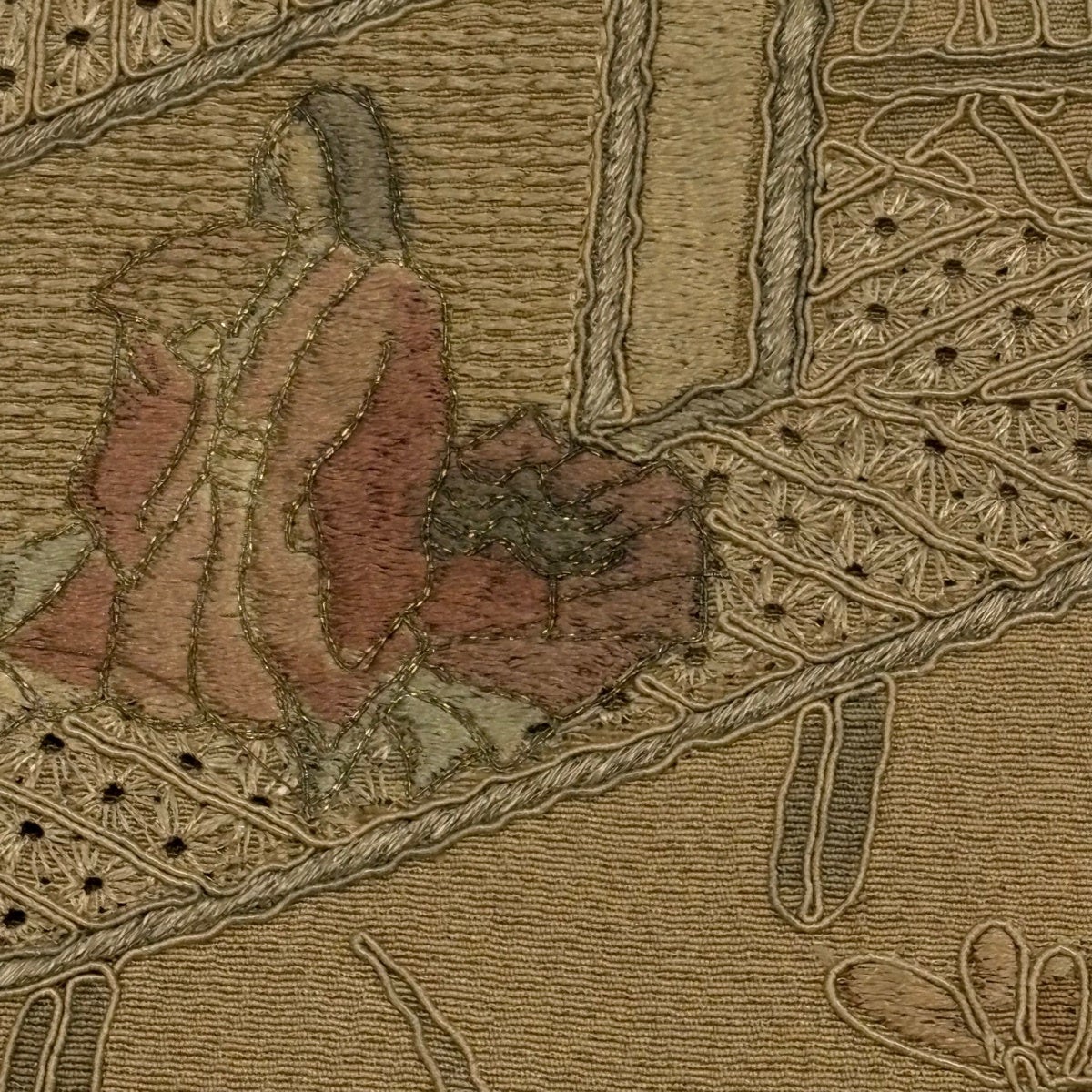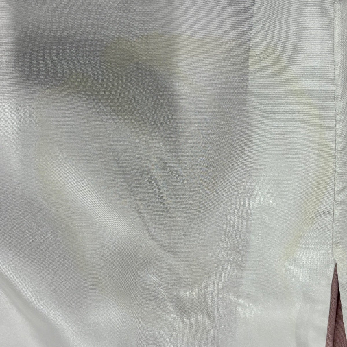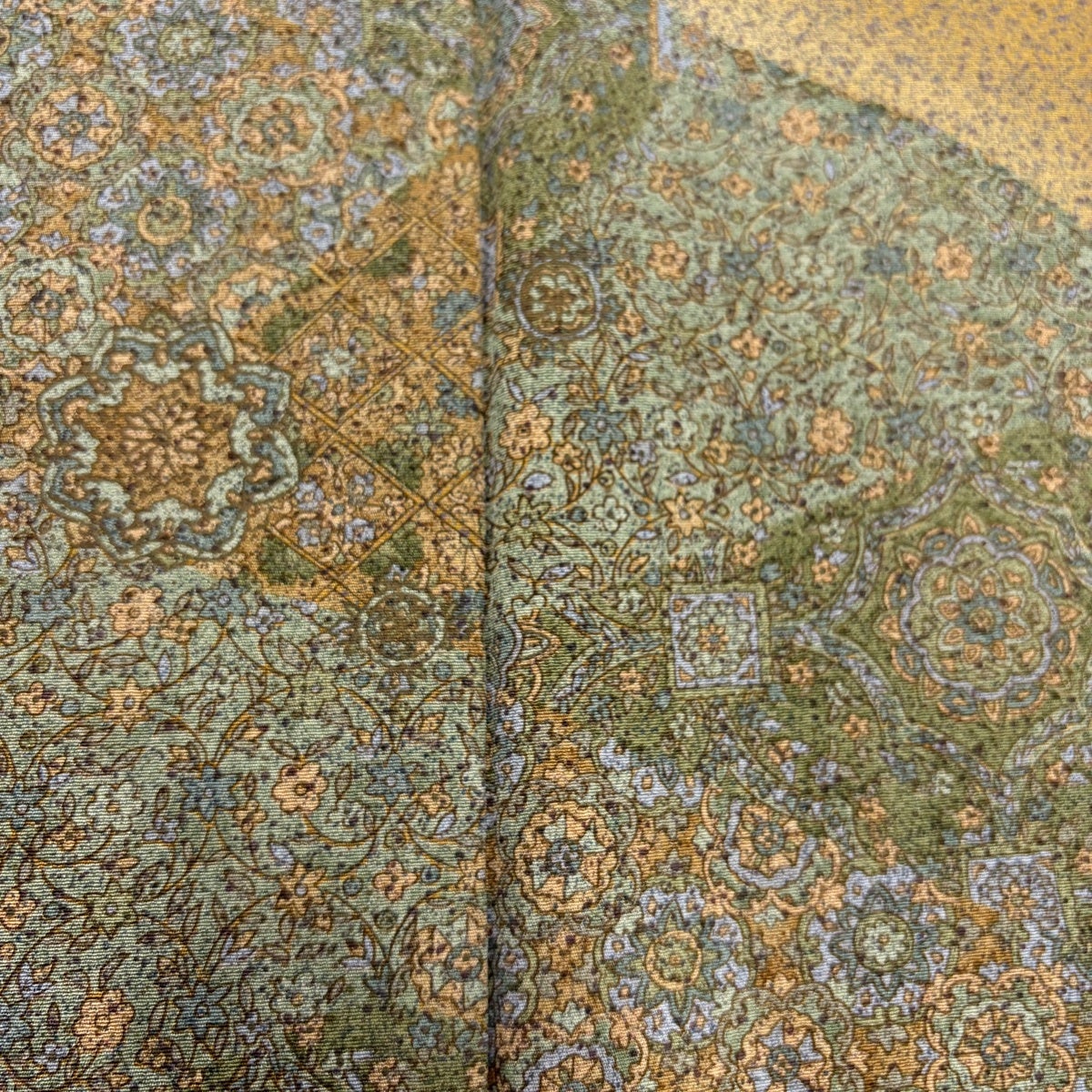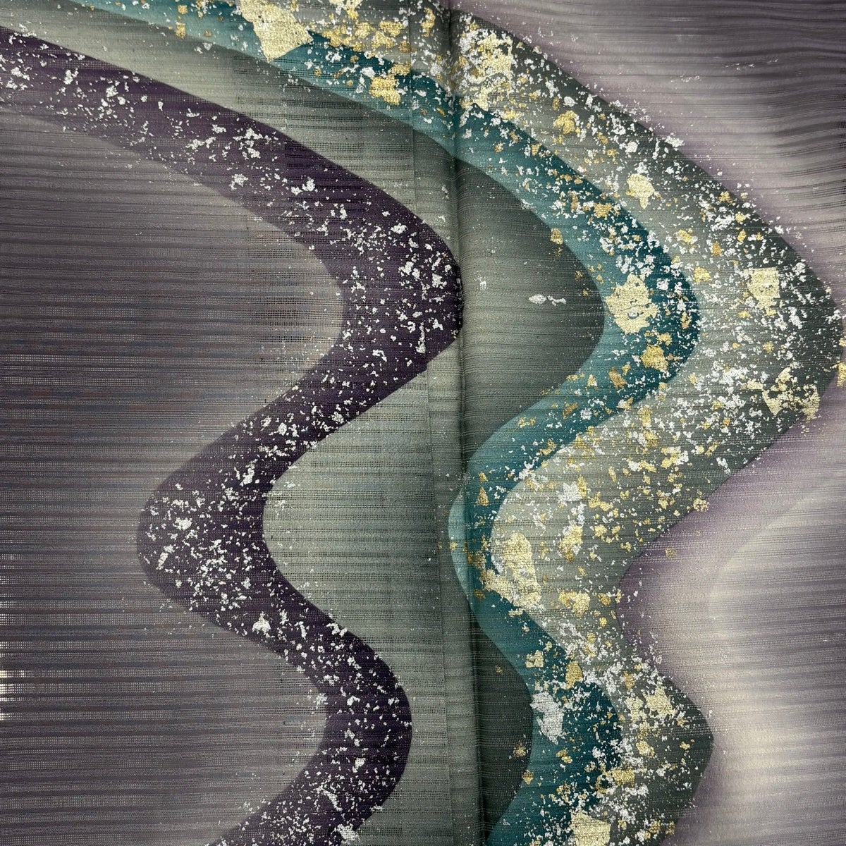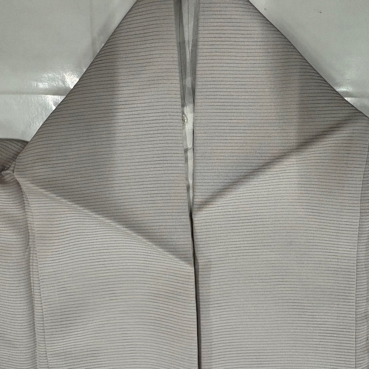 付け下げは訪問着を簡略化した訪問着より格が低くで小紋より格の高いの着物です。 特徴としては仕立て方の違いから訪問着などの一度真っさらな反物を着物の形に仮仕立てした後に柄付けをする絵羽模様とは違い、反物の状態で着用した時に柄付けが全て上を向くように書く事により左右の身頃や肩から袖にかけての模様が繋がっていない事です。 付け下げの歴史は他の着物に比べ浅く、戦時下に華美な訪問着が禁止された事で生まれた着物で、その後訪問着に比べ比較的安価で、それでいて着用シーンも訪問着とほぼ変わらないため大変好評になり、付け下げ訪問着と呼ばれる華やかな柄付けのものも考案された事により普及していきました。