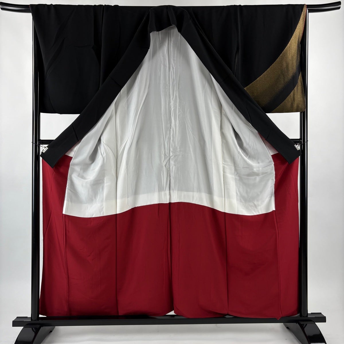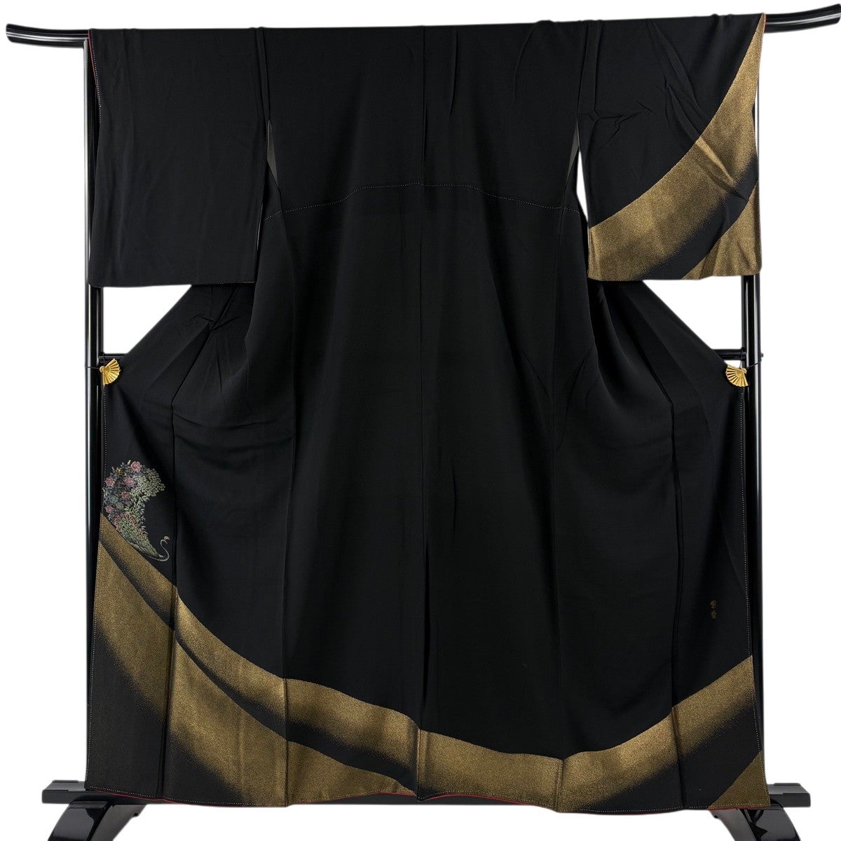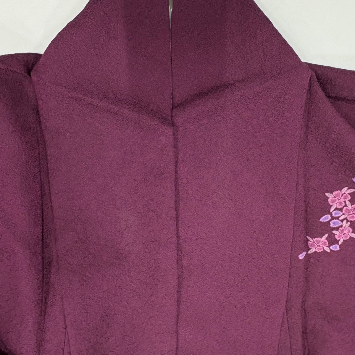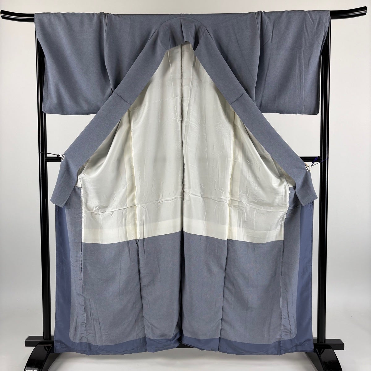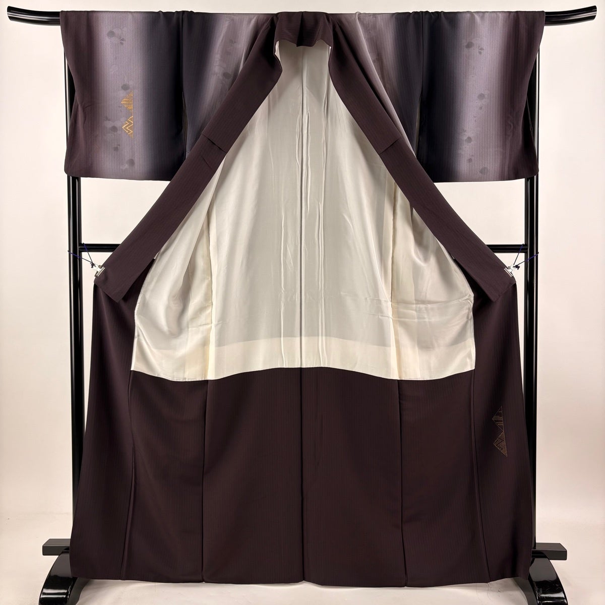 付け下げは訪問着を簡略化した訪問着より格が低くで小紋より格の高いの着物です。 特徴としては仕立て方の違いから訪問着などの一度真っさらな反物を着物の形に仮仕立てした後に柄付けをする絵羽模様とは違い、反物の状態で着用した時に柄付けが全て上を向くように書く事により左右の身頃や肩から袖にかけての模様が繋がっていない事です。 付け下げの歴史は他の着物に比べ浅く、戦時下に華美な訪問着が禁止された事で生まれた着物で、その後訪問着に比べ比較的安価で、それでいて着用シーンも訪問着とほぼ変わらないため大変好評になり、付け下げ訪問着と呼ばれる華やかな柄付けのものも考案された事により普及していきました。