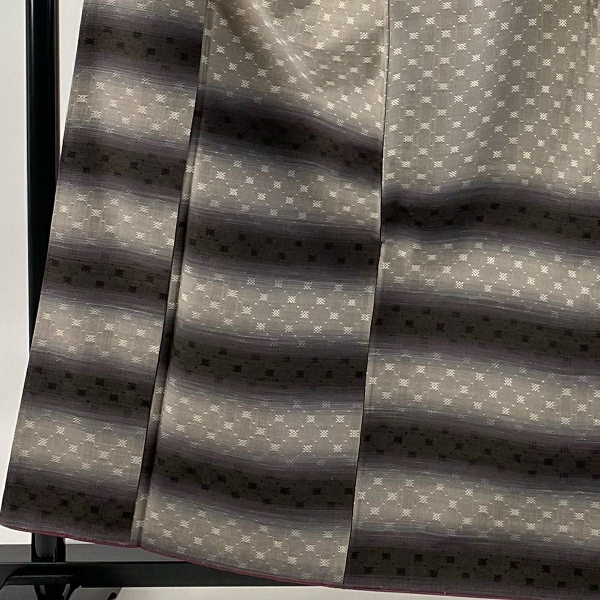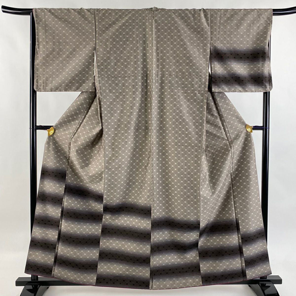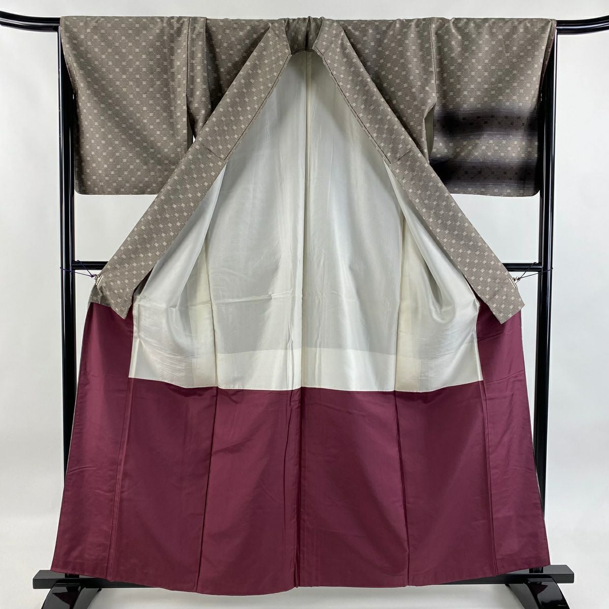 付け下げは訪問着を簡略化した訪問着より格が低くで小紋より格の高いの着物です。 特徴としては仕立て方の違いから訪問着などの一度真っさらな反物を着物の形に仮仕立てした後に柄付けをする絵羽模様とは違い、反物の状態で着用した時に柄付けが全て上を向くように書く事により左右の身頃や肩から袖にかけての模様が繋がっていない事です。 付け下げの歴史は他の着物に比べ浅く、戦時下に華美な訪問着が禁止された事で生まれた着物で、その後訪問着に比べ比較的安価で、それでいて着用シーンも訪問着とほぼ変わらないため大変好評になり、付け下げ訪問着と呼ばれる華やかな柄付けのものも考案された事により普及していきました。