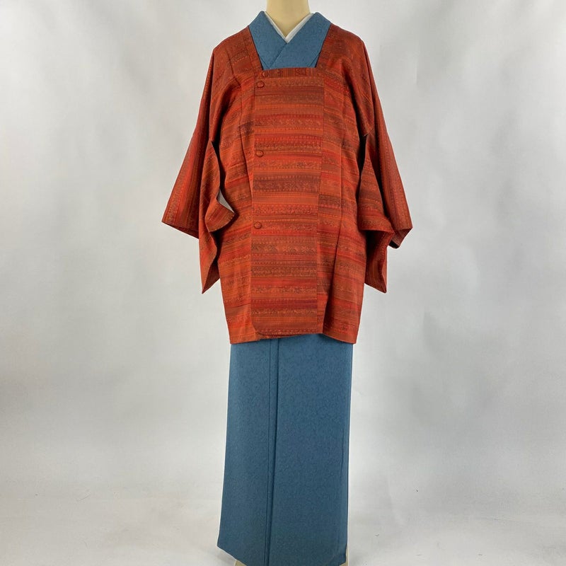 【道行】 赤系 茜色 秀品 A 約100cm以下 裄丈63cm-64cm (M)size 袖丈47cm -3980 美品 二万以下