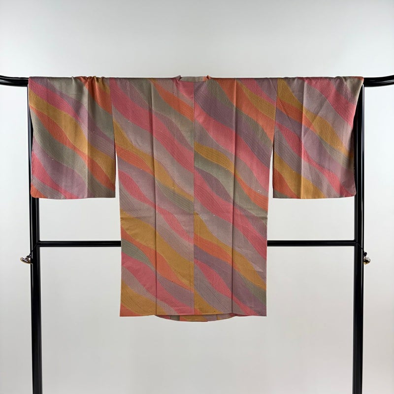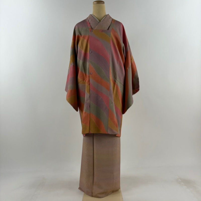【道行】 赤系 ピンク 秀品 C 約100cm以下 裄丈67cm-68cm (L)size 袖丈50cm-60cm -3980 二万以下