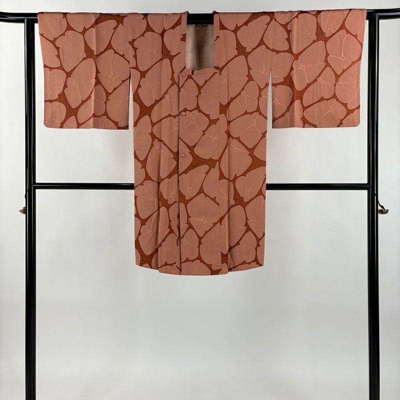 【道行】 赤系 サーモンピンク 名品 A 約100cm以下 裄丈63cm-64cm (S)size 袖丈46cm以下 9990-29990 美品 二万以下