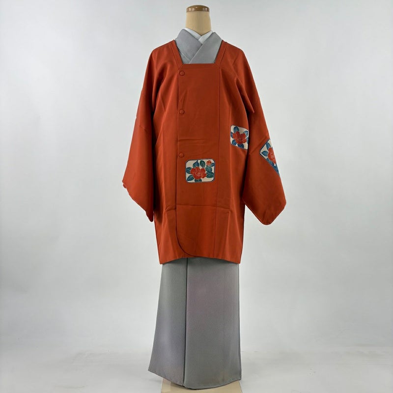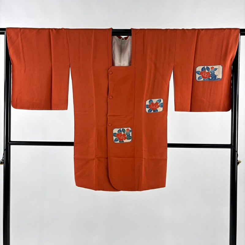 【道行】 赤系 朱色 秀品 B 約100cm以下 裄丈67cm-68cm (L)size 袖丈48cm 7990-9980 二万以下