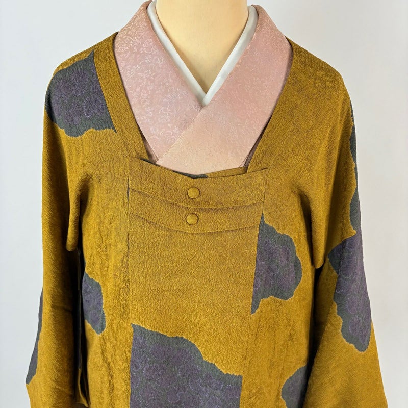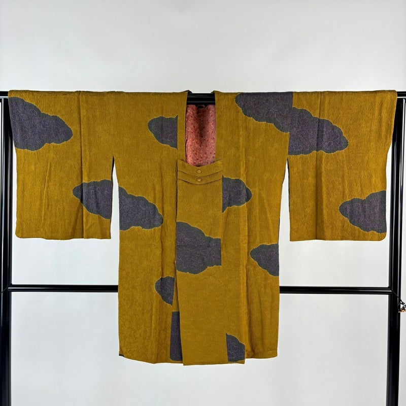 【道行】 黄色系 山吹茶色 秀品 A 約100cm以下 裄丈65cm (M)size 袖丈50cm-60cm 9990-29990 美品 二万以下
