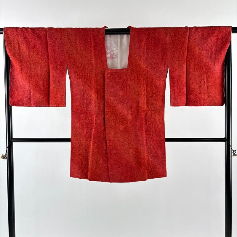 【道行】 赤系 赤 秀品 A 約100cm以下 裄丈67cm-68cm (M)size 袖丈48cm -3980 美品 二万以下