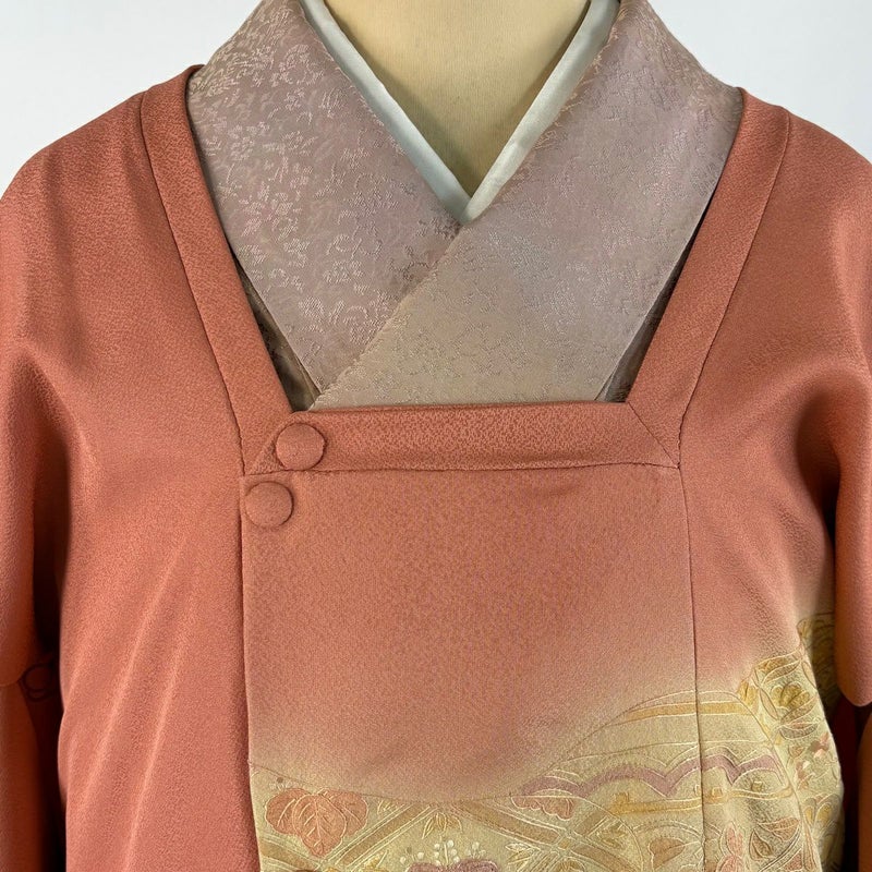 【着物ランク】秀品 【素材】正絹 【身丈】約85cm 【裄丈】約65.5cm 【袖丈】約49cm 【袖幅】約34cm 【サイズ】M 【状態ランク】ランクB 【着物着用シーン】フォーマル、慶弔両用、カジュアル