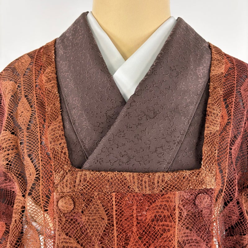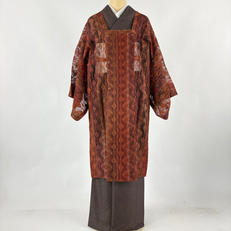 【道行】 赤系 赤茶 秀品 A 約101cm~約110cm 裄丈63cm-64cm (M)size 袖丈47cm 9990-29990 美品 二万以下