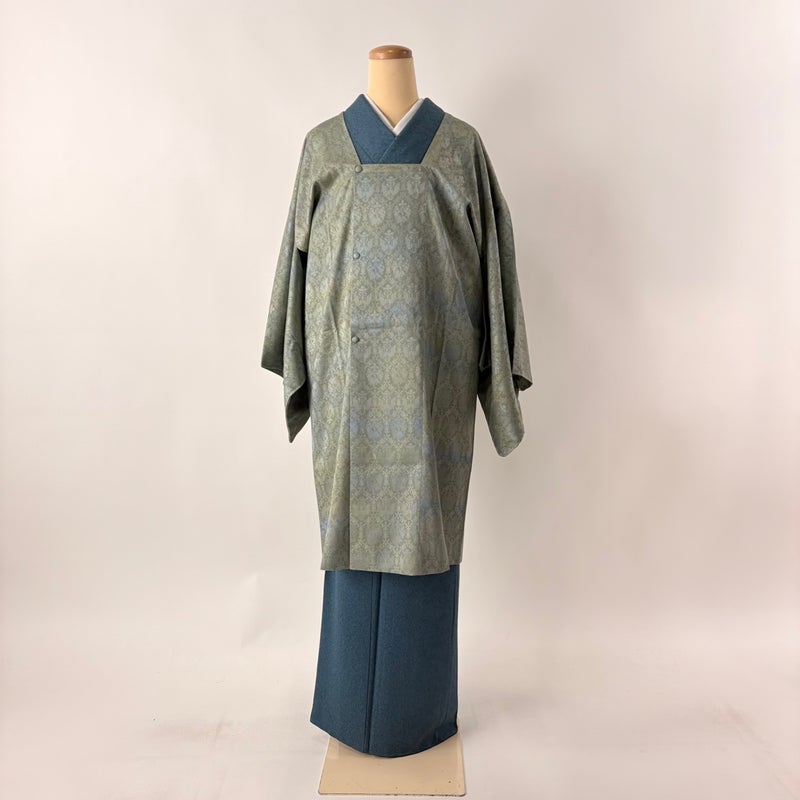 【道行】 緑系 緑 名品 A 約101cm~約110cm 裄丈67cm-68cm (L)size 袖丈48cm 9990-29990 美品 二万以下