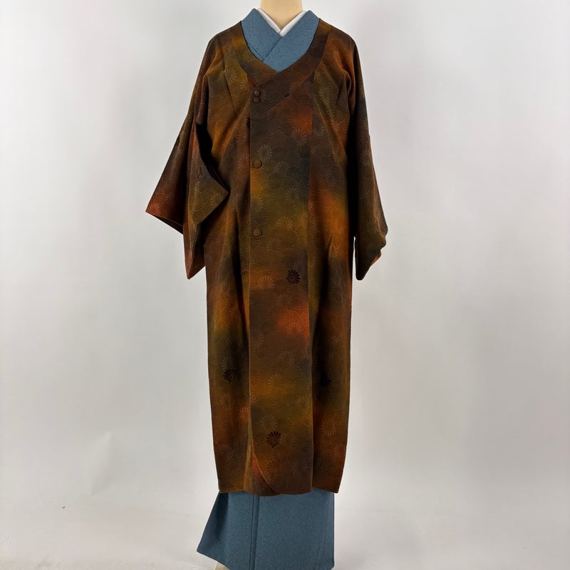 【道行】 茶系 茶色 秀品 A 約120cm~約129cm 裄丈63cm-64cm (M)size 袖丈46cm以下 9990-29990 美品 二万以下
