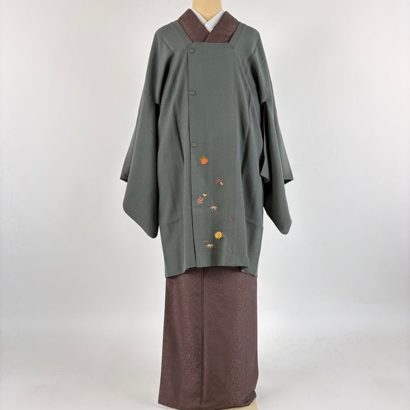 【道行】 灰色系 灰緑 秀品 B 約100cm以下 裄丈67cm-68cm (L)size 袖丈49cm 7990-9980 二万以下