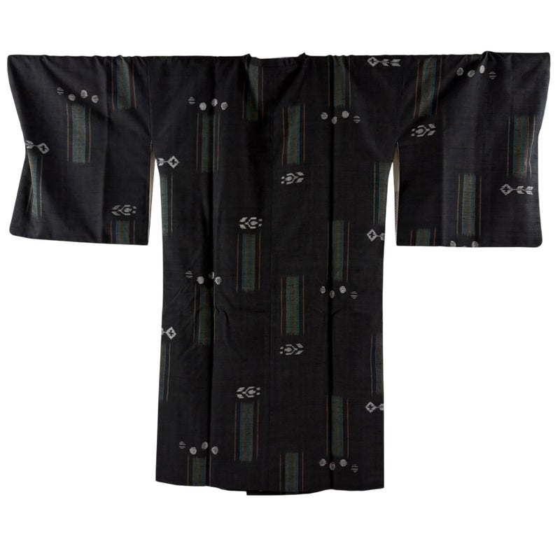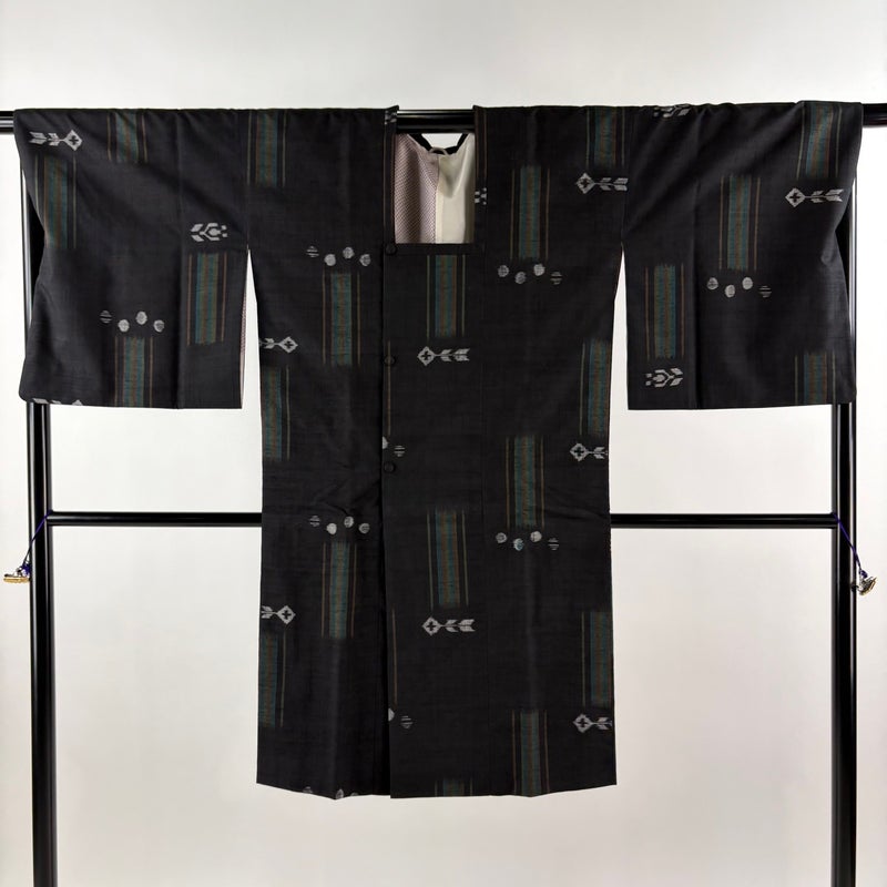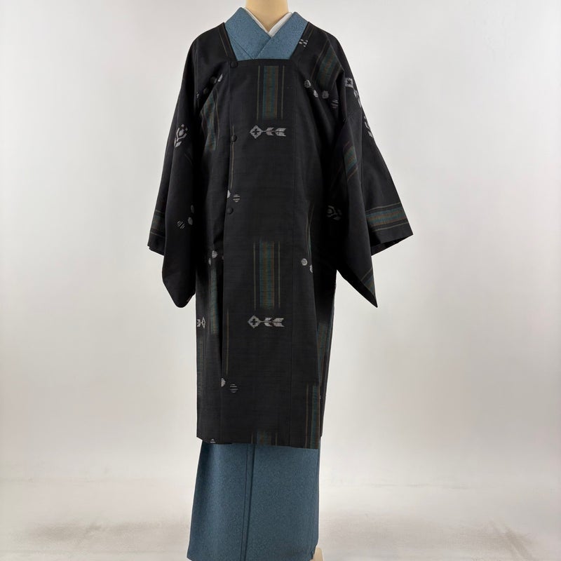 【道行】 黒系 黒 秀品 A 約101cm~約110cm 裄丈69cm以上 (L)size 袖丈50cm-60cm 9990-29990 美品 二万以下