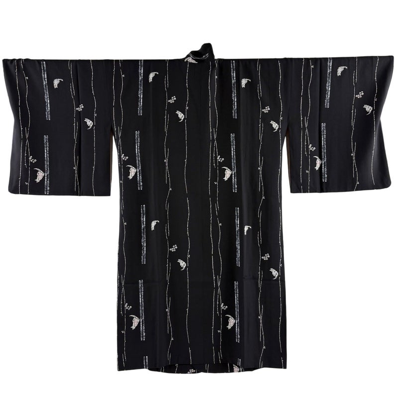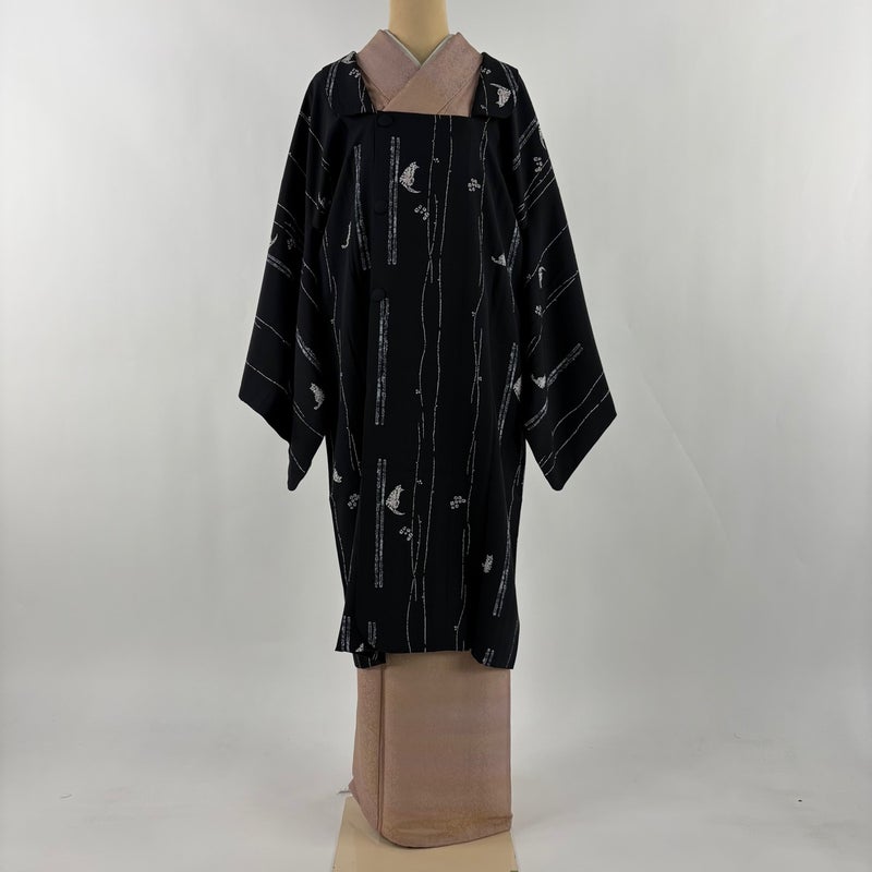 【道行】 黒系 黒 名品 A 約101cm~約110cm 裄丈69cm以上 (L)size 袖丈49cm 9990-29990 美品 二万以下