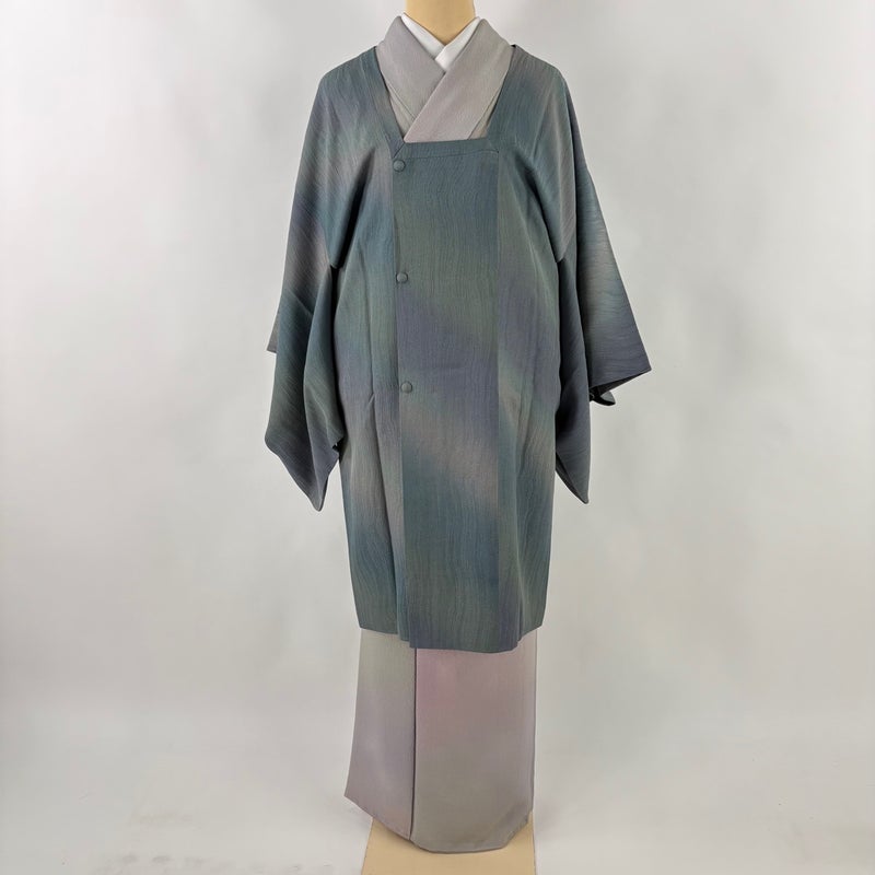 【道行】 灰色系 灰緑 秀品 B 約100cm以下 裄丈63cm-64cm (S)size 袖丈48cm 7990-9980 二万以下
