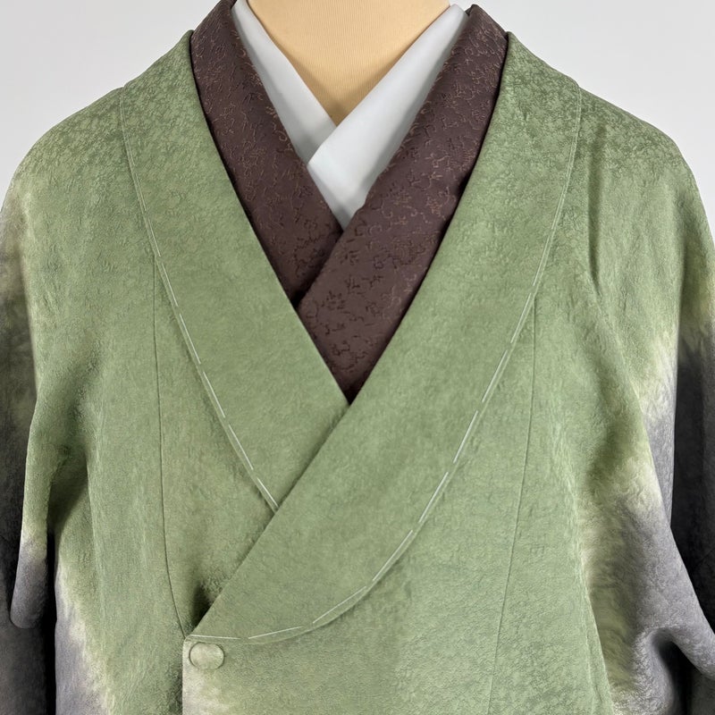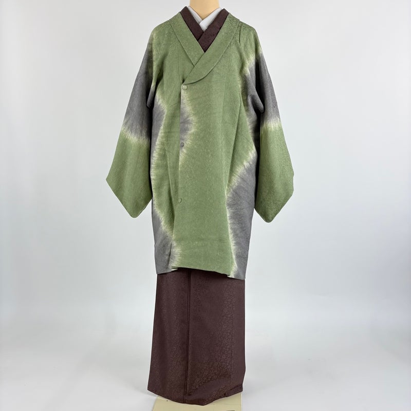 【道行】 緑系 よもぎ色 秀品 A 約100cm以下 裄丈65cm (M)size 袖丈47cm 9990-29990 美品 二万以下