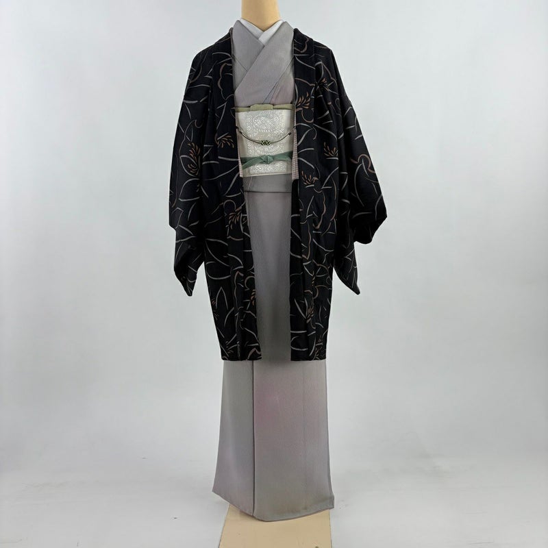 【羽織】 黒系 黒 秀品 A 約100cm以下 裄丈67cm-68cm (L)size 袖丈48cm 9990-29990 美品 二万以下