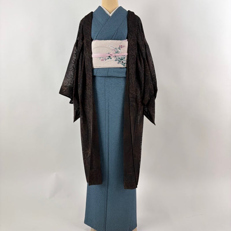 【羽織】 茶系 焦茶色 逸品 B 約111cm~約119cm 裄丈67cm-68cm (L)size 袖丈46cm以下 30000- 五万以下